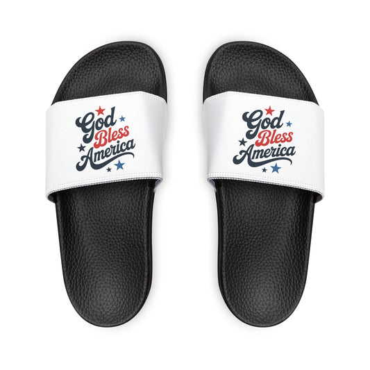 Patriotic Sandals,Bless America Slides, Summer Footwear, Comfortable Beach Sandals, Independence Day Shoes
