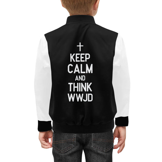 Keep Calm And Think WWJD Kids' Christian Bomber Jacket with Pockets