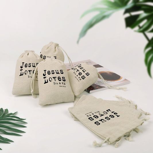 Faith-Inspired Christian Cotton Linen Drawstring Bags (Pack of 8) – Durable & Stylish Storage