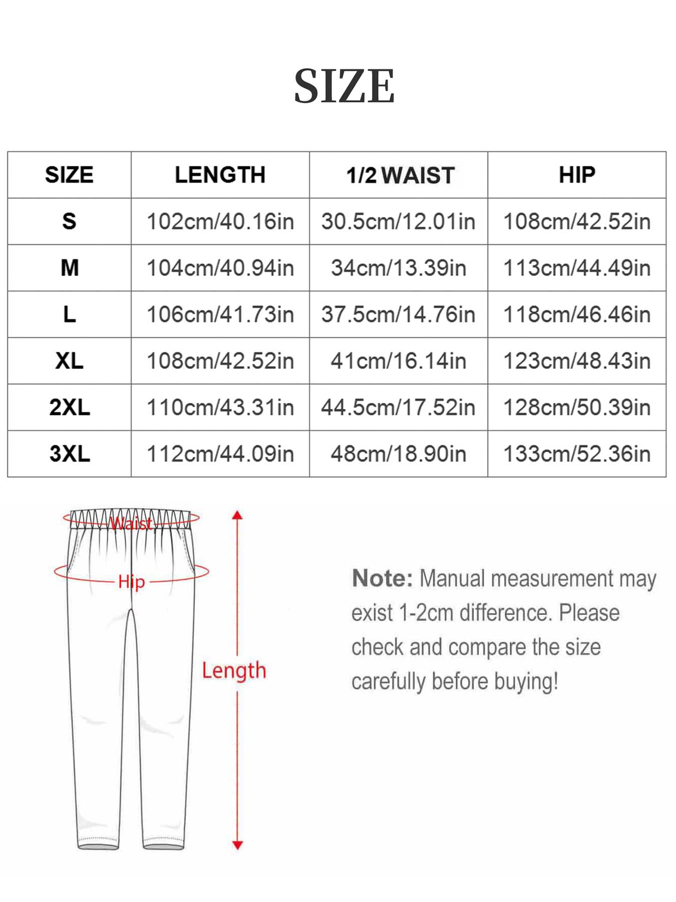 | Size | Pants Length (cm/in) | 1/2 Waist (cm/in) | Hip (cm/in) | 1/2 Chest (cm/in) | Length (cm/in) | Sleeve Length (cm/in) |