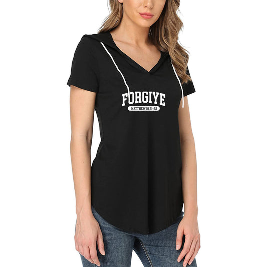 Forgive Women's Christian Workout Gym Hoodie T-Shirt | Short Sleeve V-Neck Activewear
