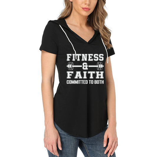Faith and Fitness - Women's Christian Short Sleeve V-Neck Gym Hoodie T-Shirt | Inspirational Activewea