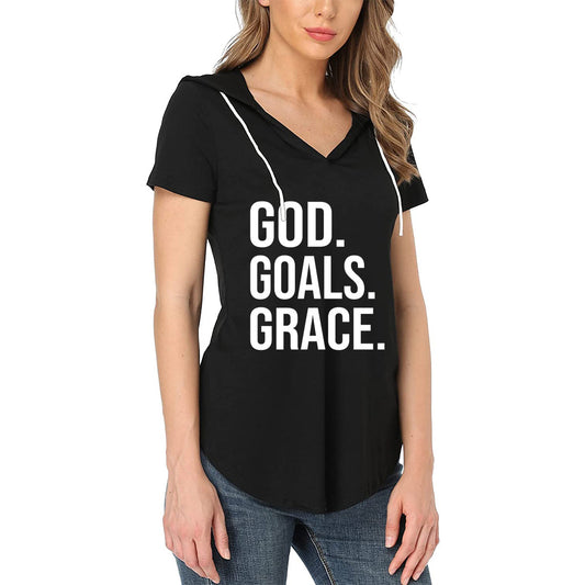 Goals Grace Women's Christian Gym Hoodie T-Shirt - Activewear for Faith & Fitness