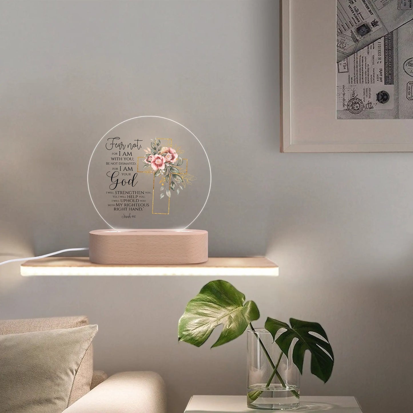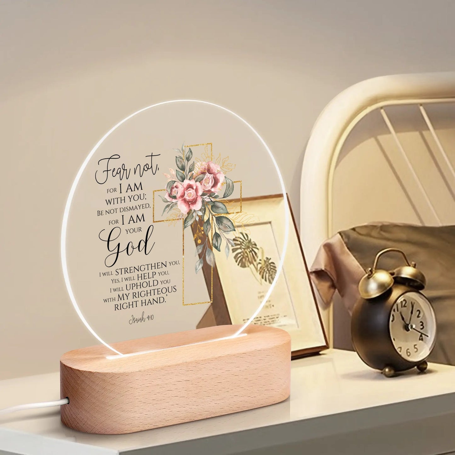 Fear Not For I Am With You Christian Acrylic Round Lamp Night Light Christian Gift Idea