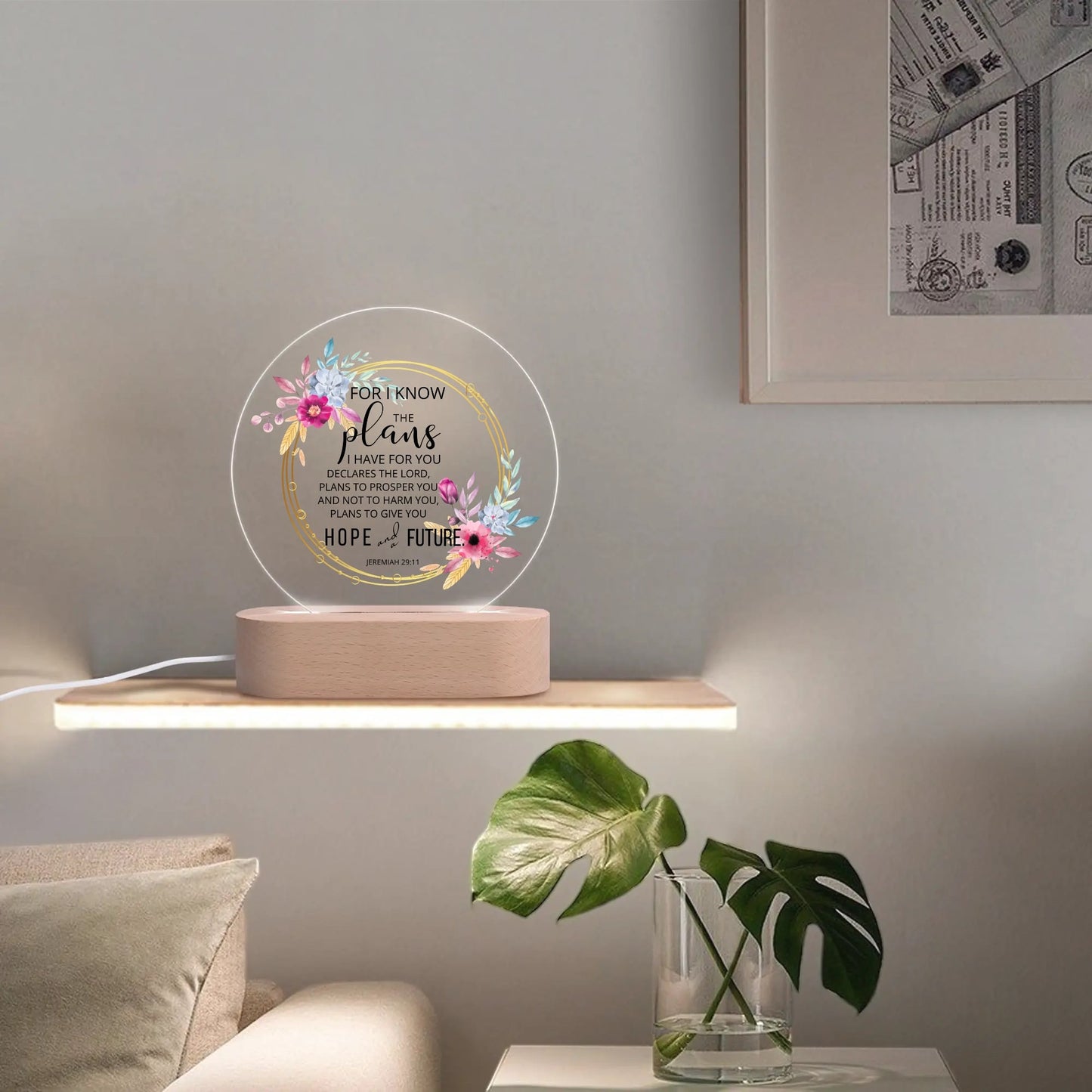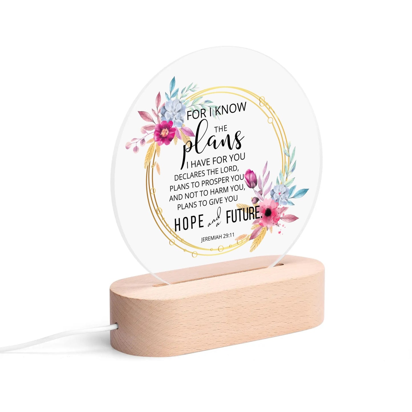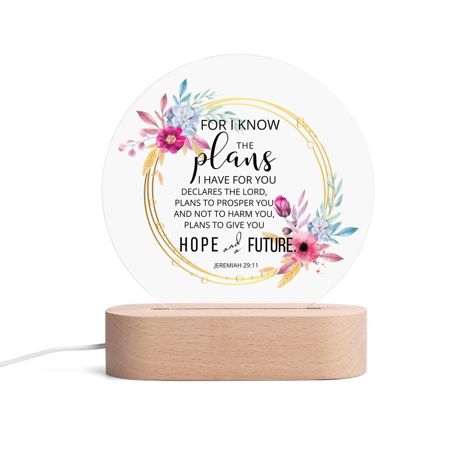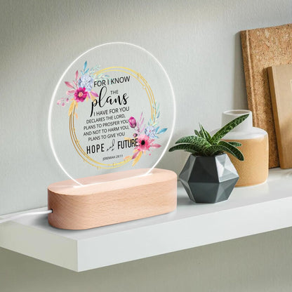 Jeremiah 29:11 For I Know The Plans I Have For You Christian Acrylic Round Lamp Night Light Christian Gift Idea