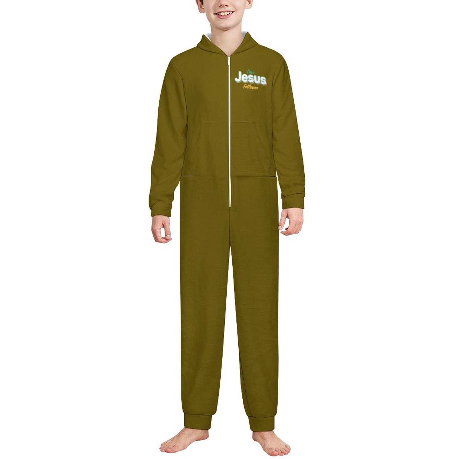 I Follow Him Toddler & Youth Christian Flannel Footless Zip up Jumpsuit Pajamas