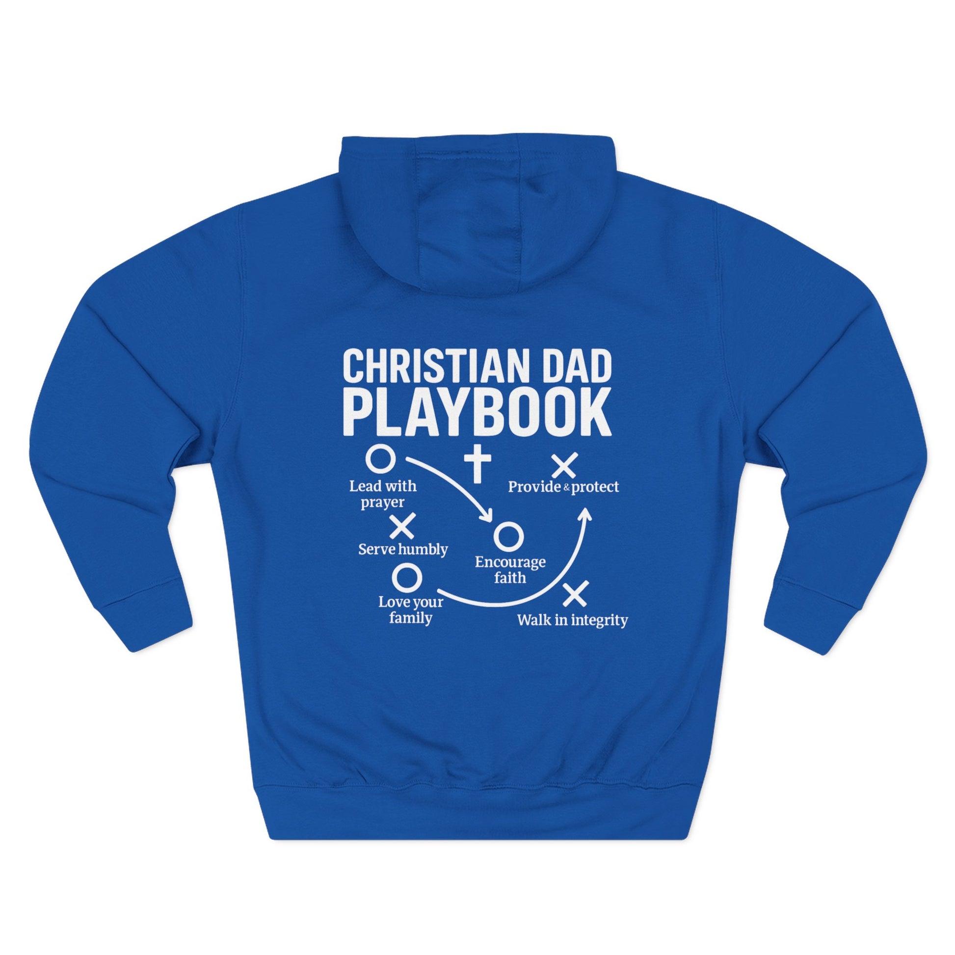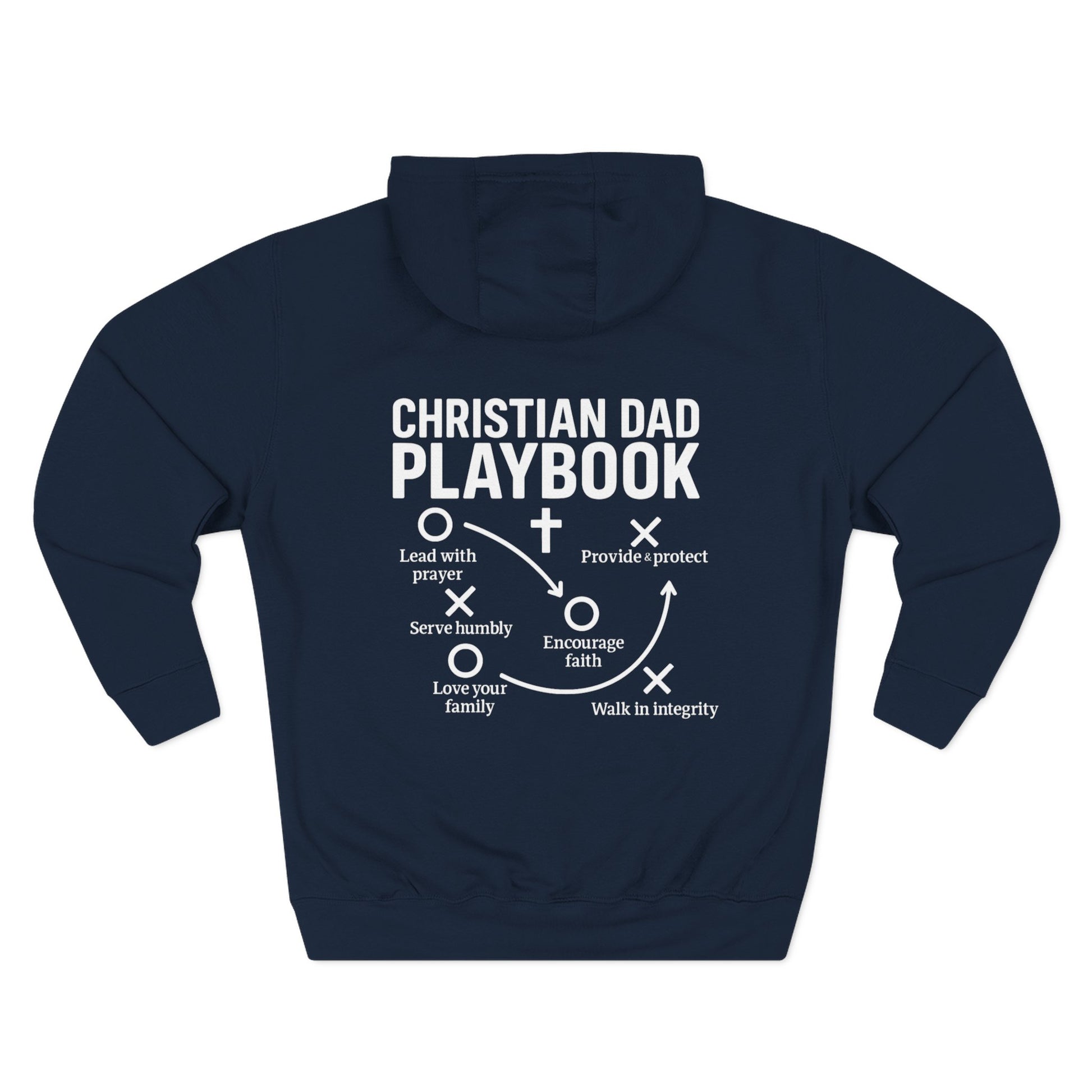 Stay cozy and stylish with this three-panel fleece hoodie, perfect for adding warmth to your day. It exudes a relaxed and comfortable vibe, making it an ideal choice for casual outings, lounging at home, or outdoor adventures. This hoodie caters to fathers who cherish family values and wish to express their faith. It makes for a thoughtful gift for holidays such as Father's Day, Christmas, or any special occasion that celebrates the role of a dad. With its versatile design, it seamlessly fits into any wardrobe, providing comfort while showcasing a meaningful message.
