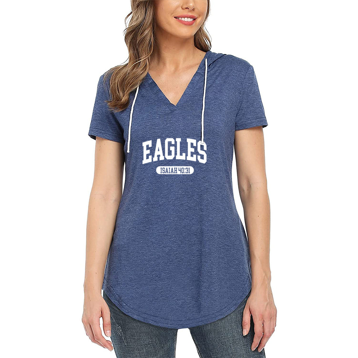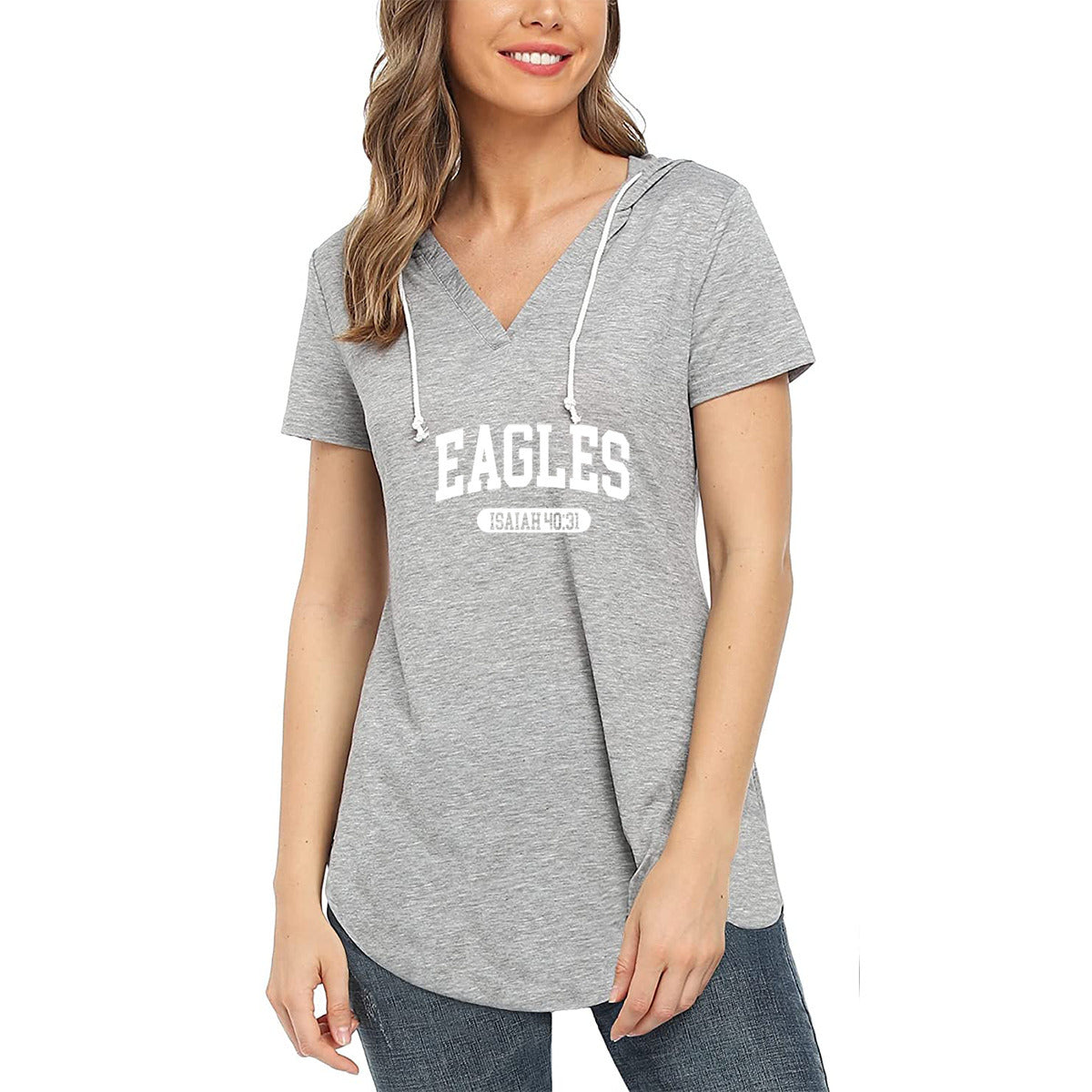Eagles Women's Christian Workout Gym Hoodie T-Shirt | Short Sleeve V-Neck Activewear