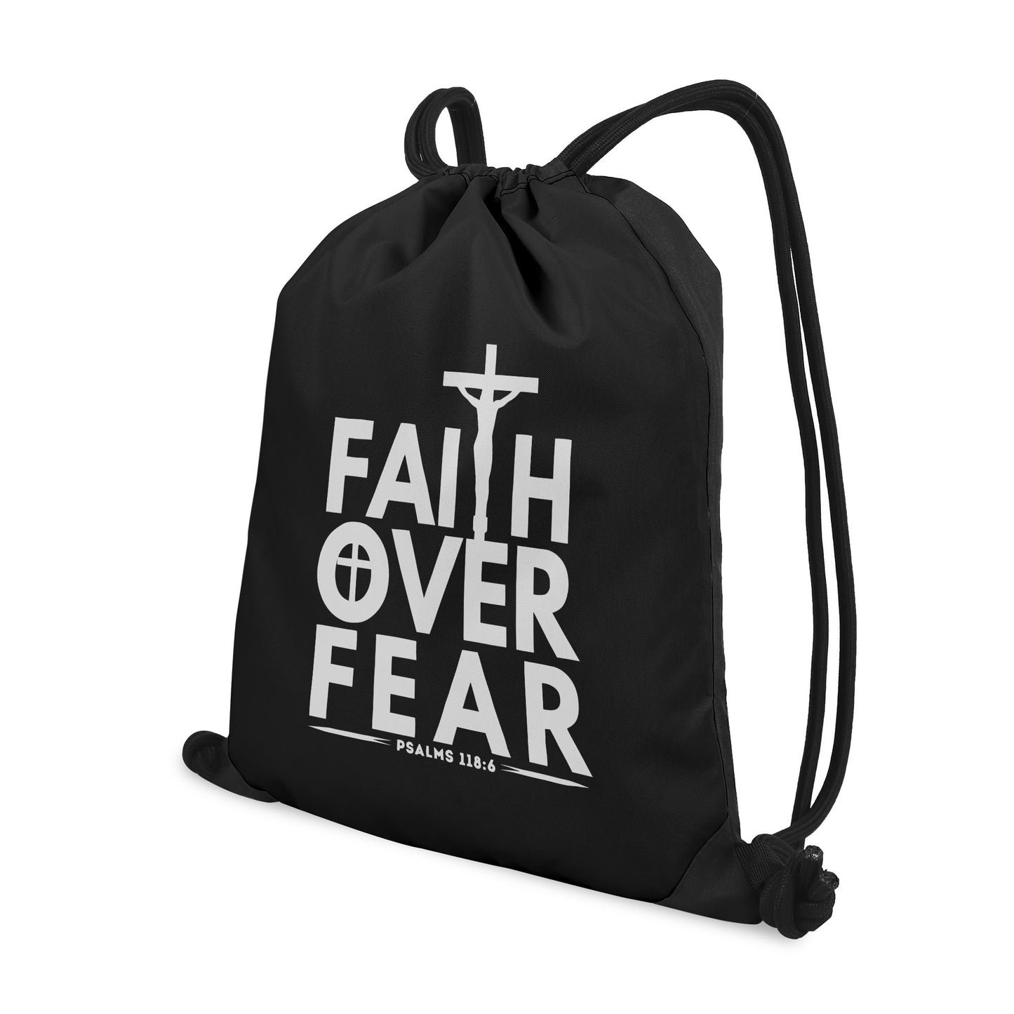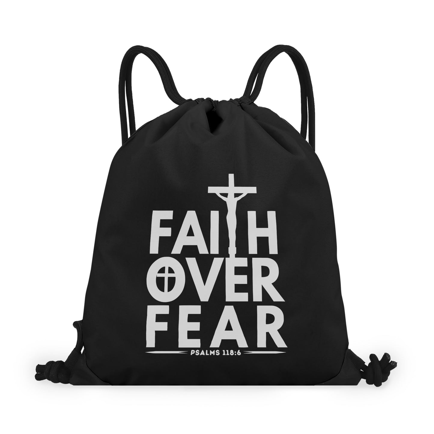 Faith Over Fear Black Gym Drawstring Bag(Single-Sided Print)NKQ7VZ5N-1