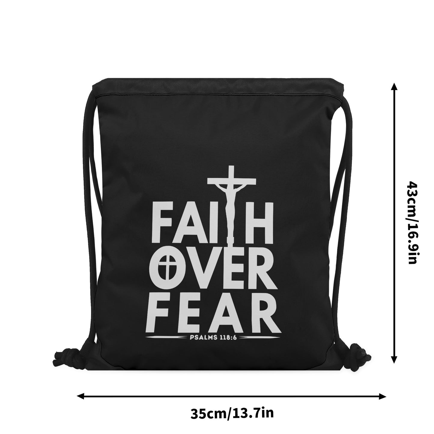 Faith Over Fear Black Gym Drawstring Bag(Single-Sided Print)