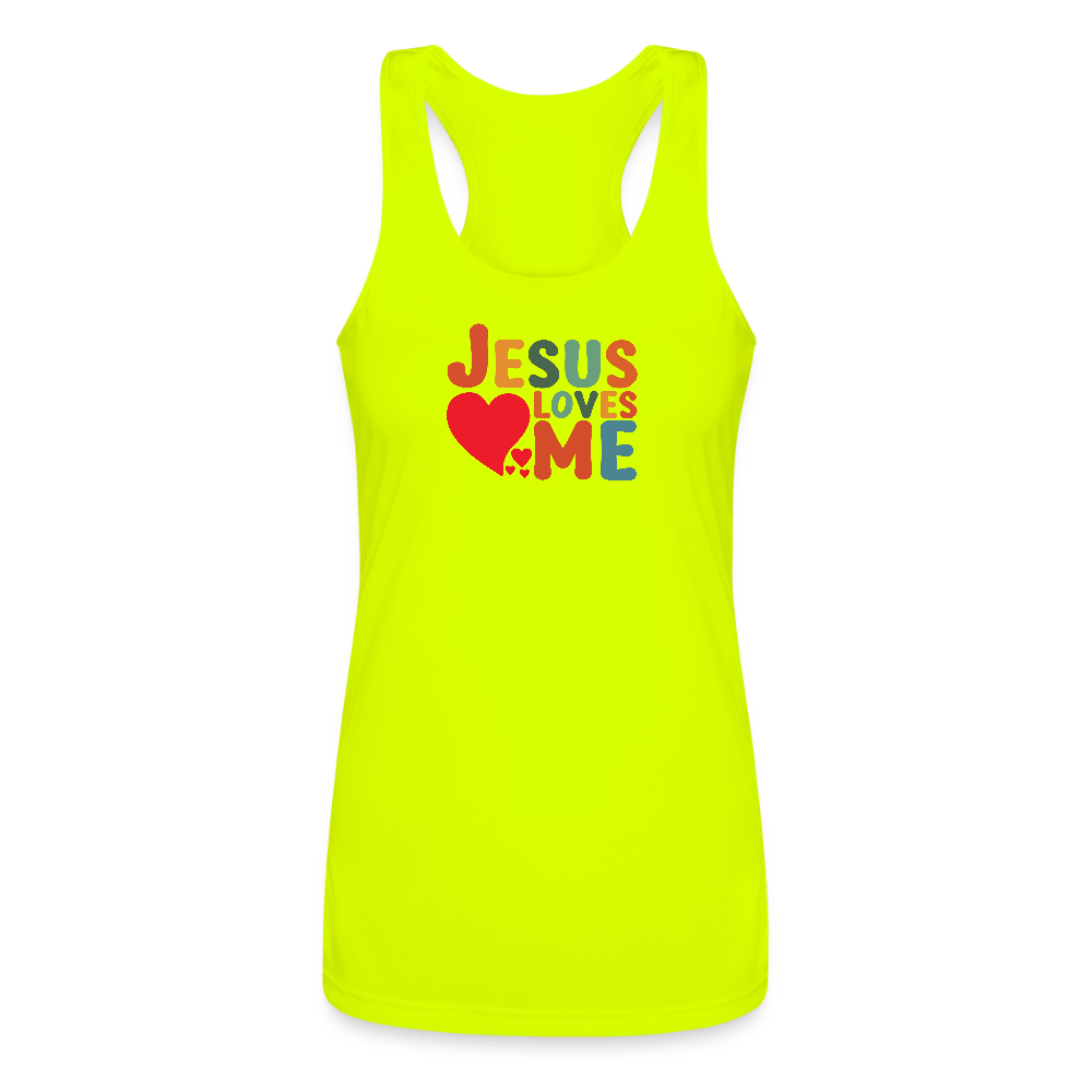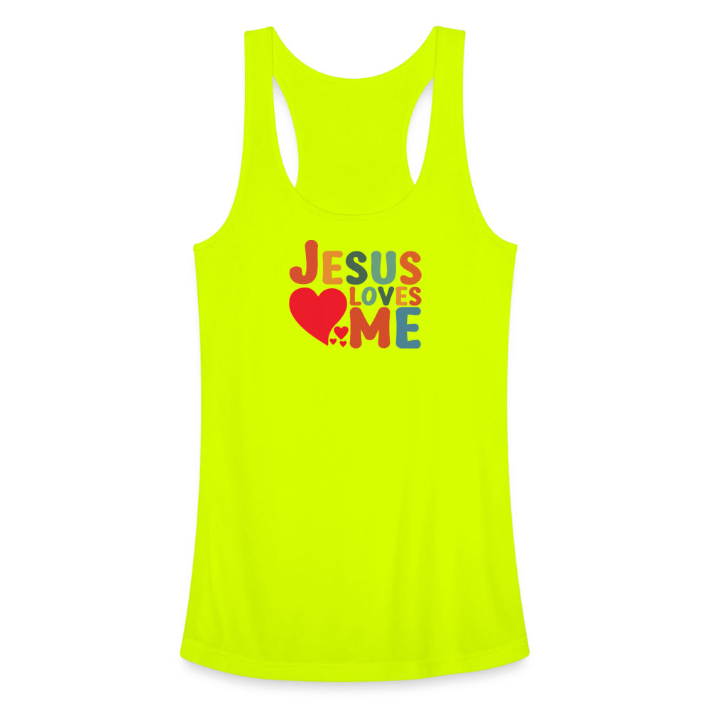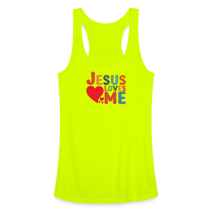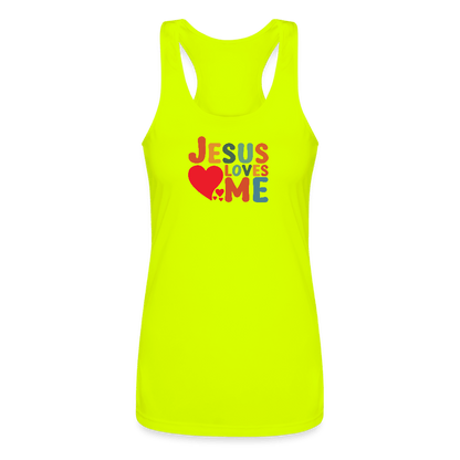 He Loves Me Women’s Christian Performance Racerback Tank Top - neon yellow