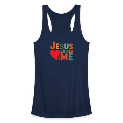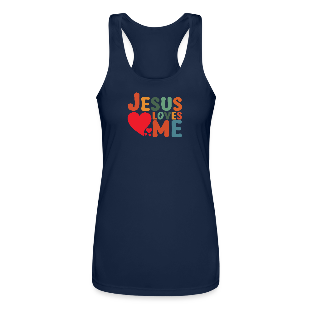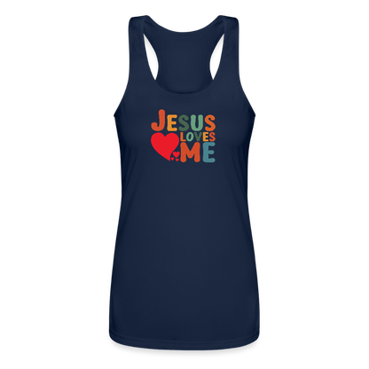 He Loves Me Women’s Christian Performance Racerback Tank Top - navy