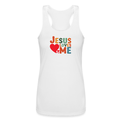 He Loves Me Women’s Christian Performance Racerback Tank Top - white