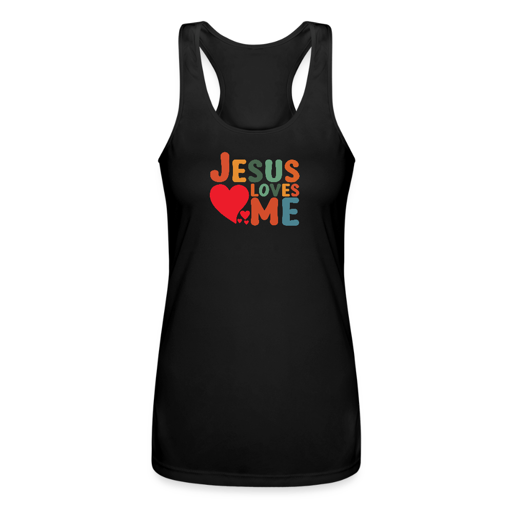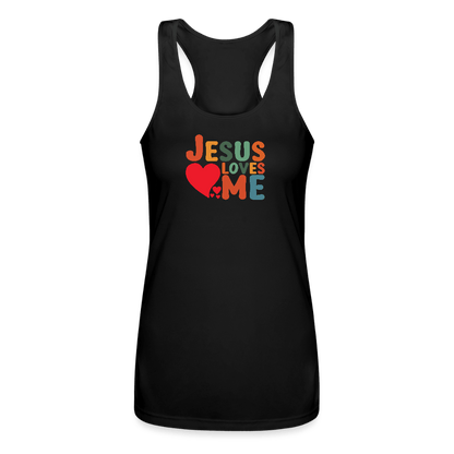 He Loves Me Women’s Christian Performance Racerback Tank Top - black