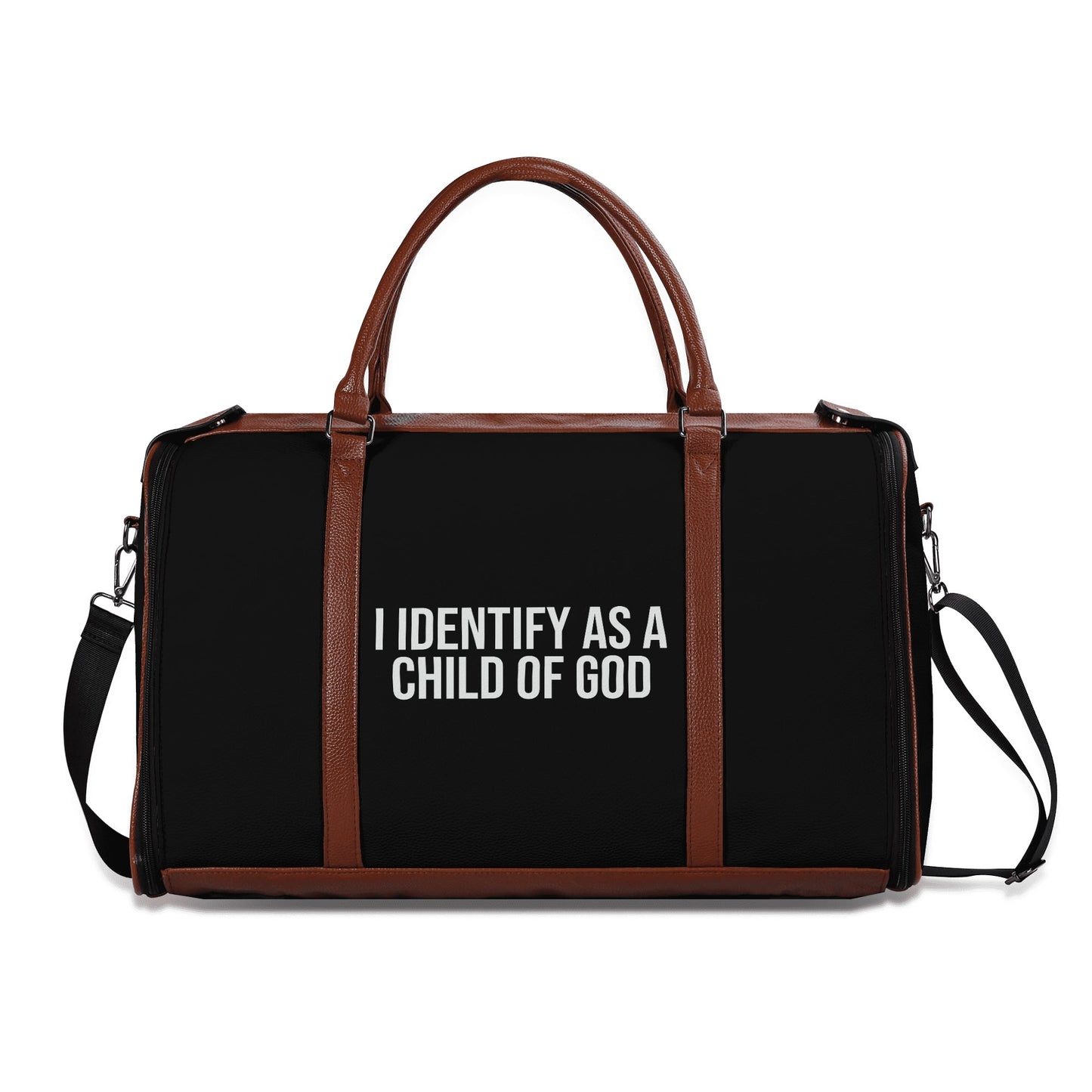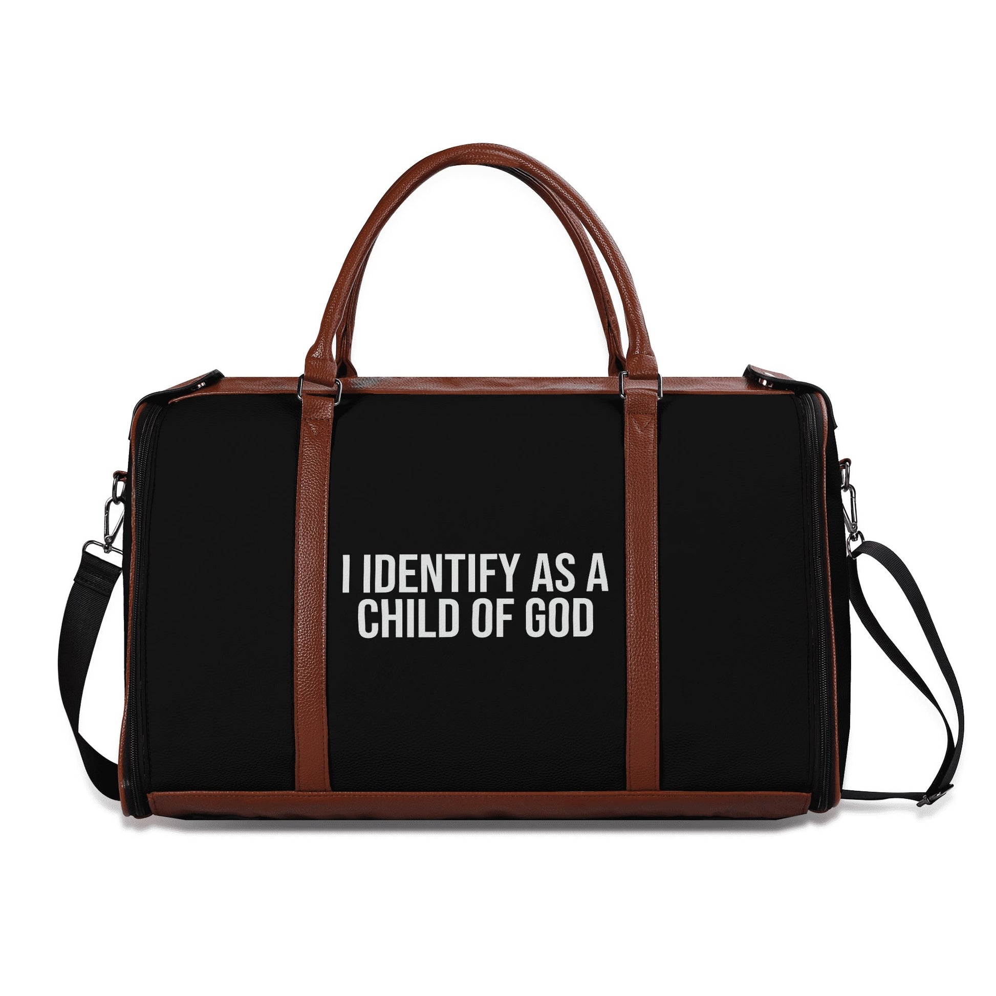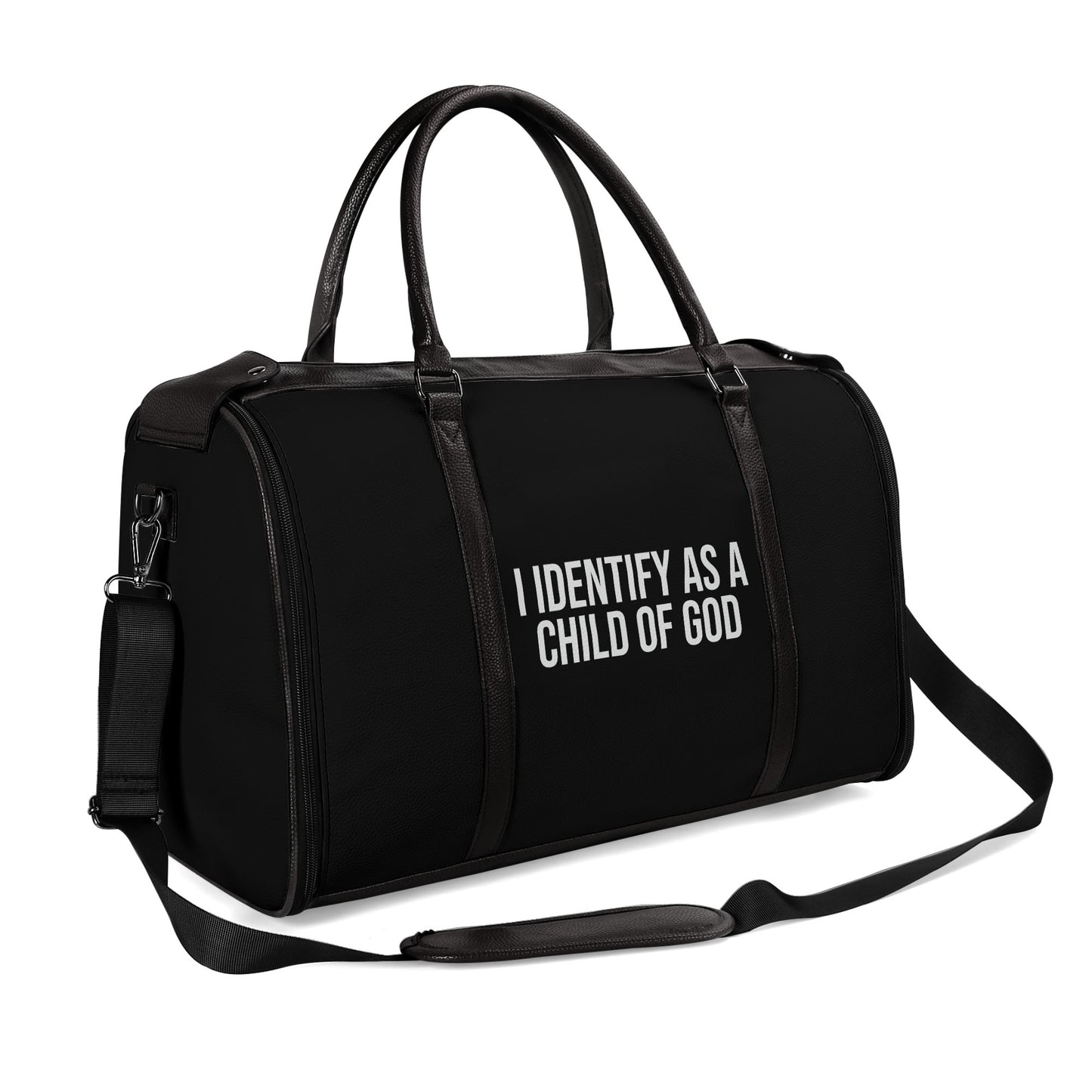 I Identify As His Child Christian PU Leather Duffle Bag Foldable Travel Bag