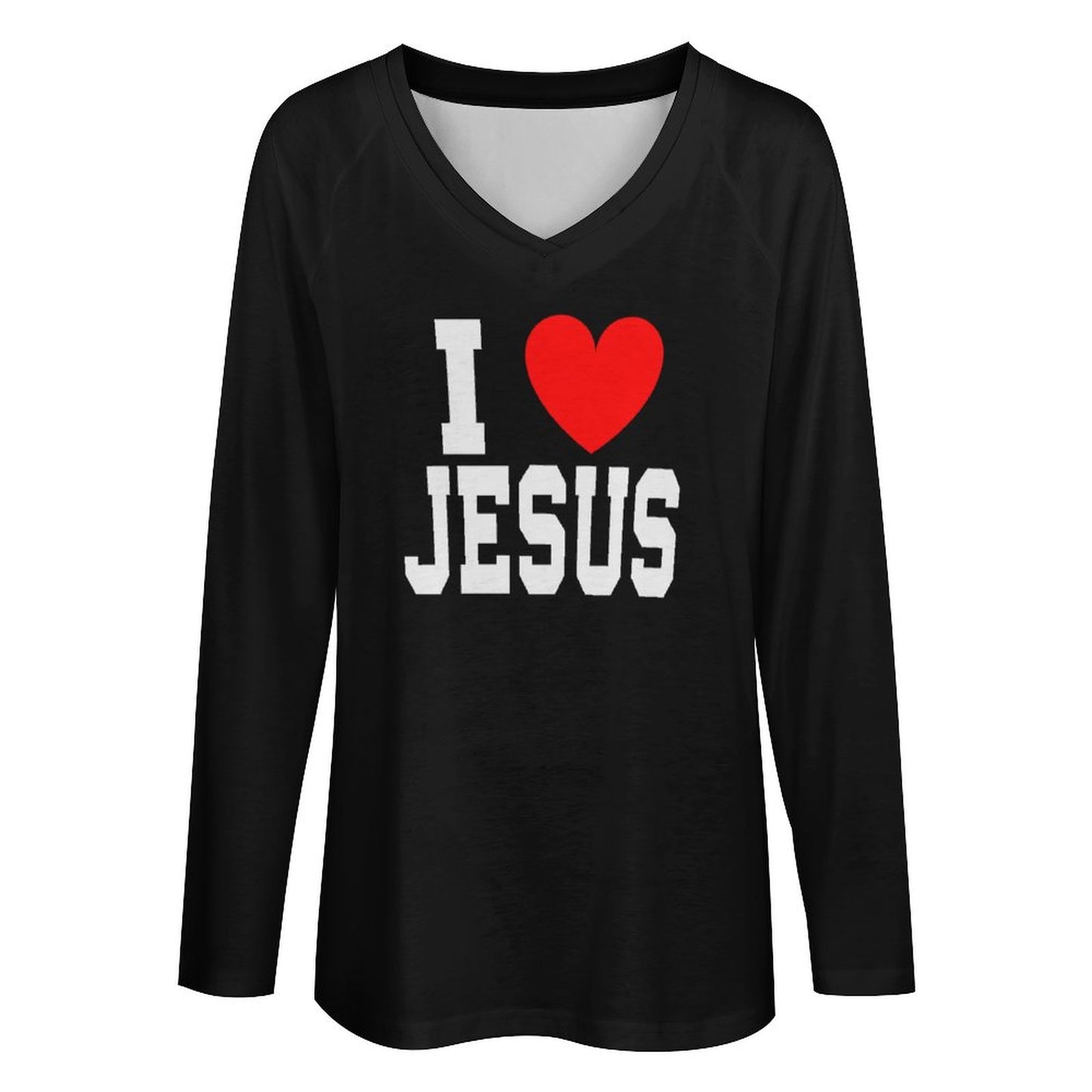I Love Women's Christian V-neck Loose Long Sleeve Pullover Sweatshirt
