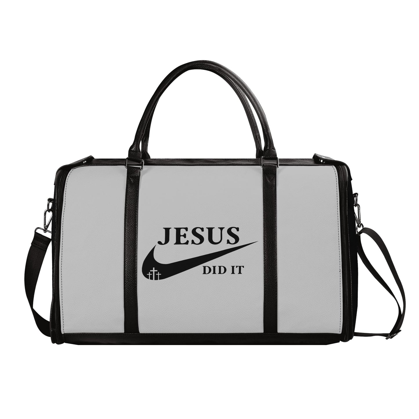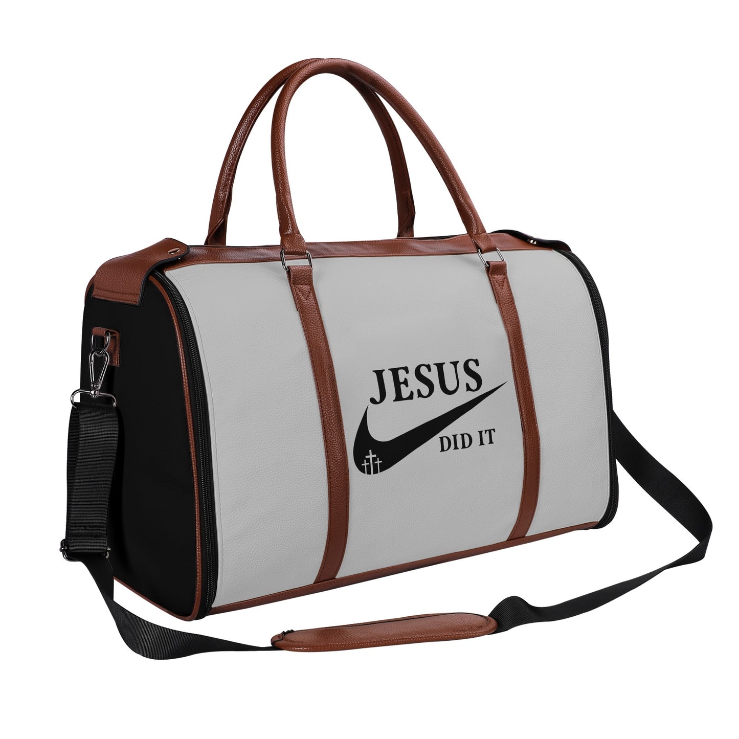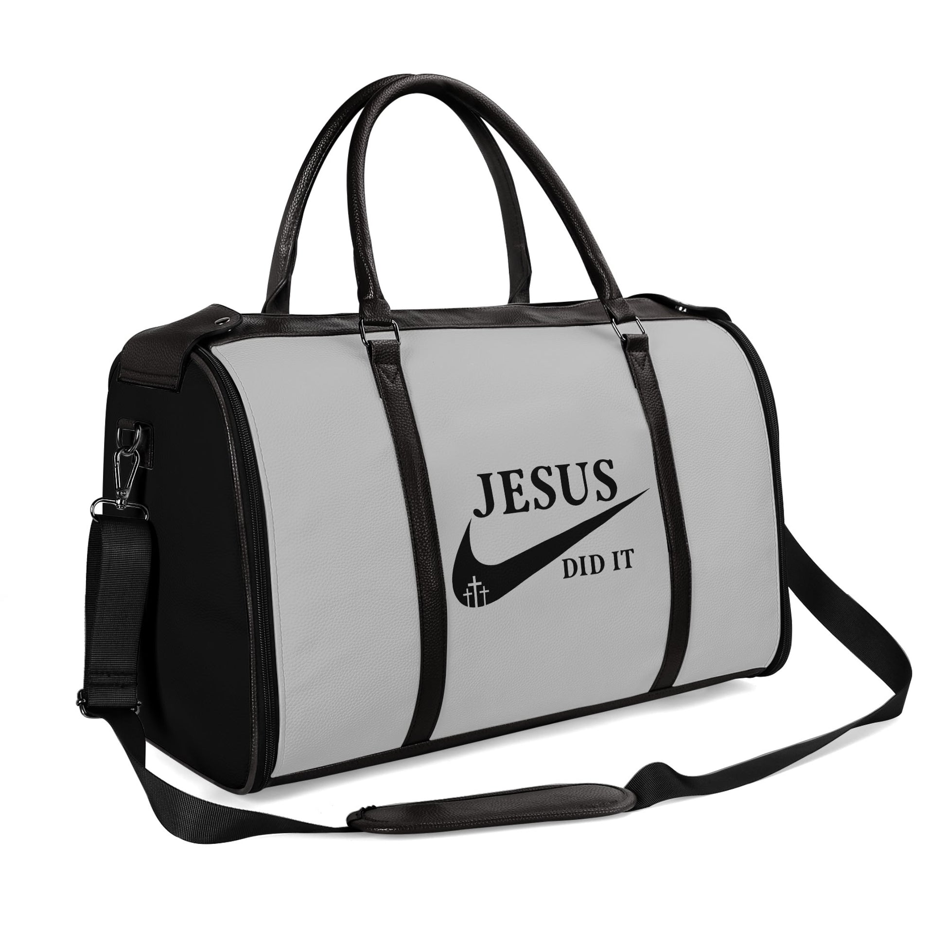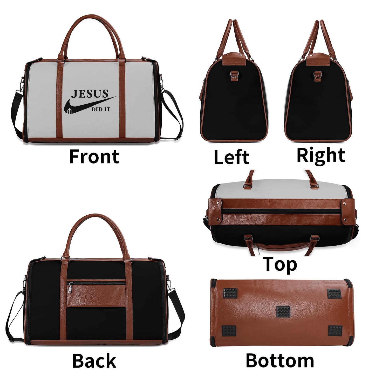 He Did It Christian PU Leather Duffle Bag Foldable Travel Bag