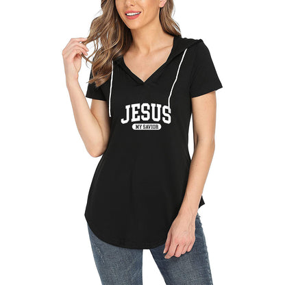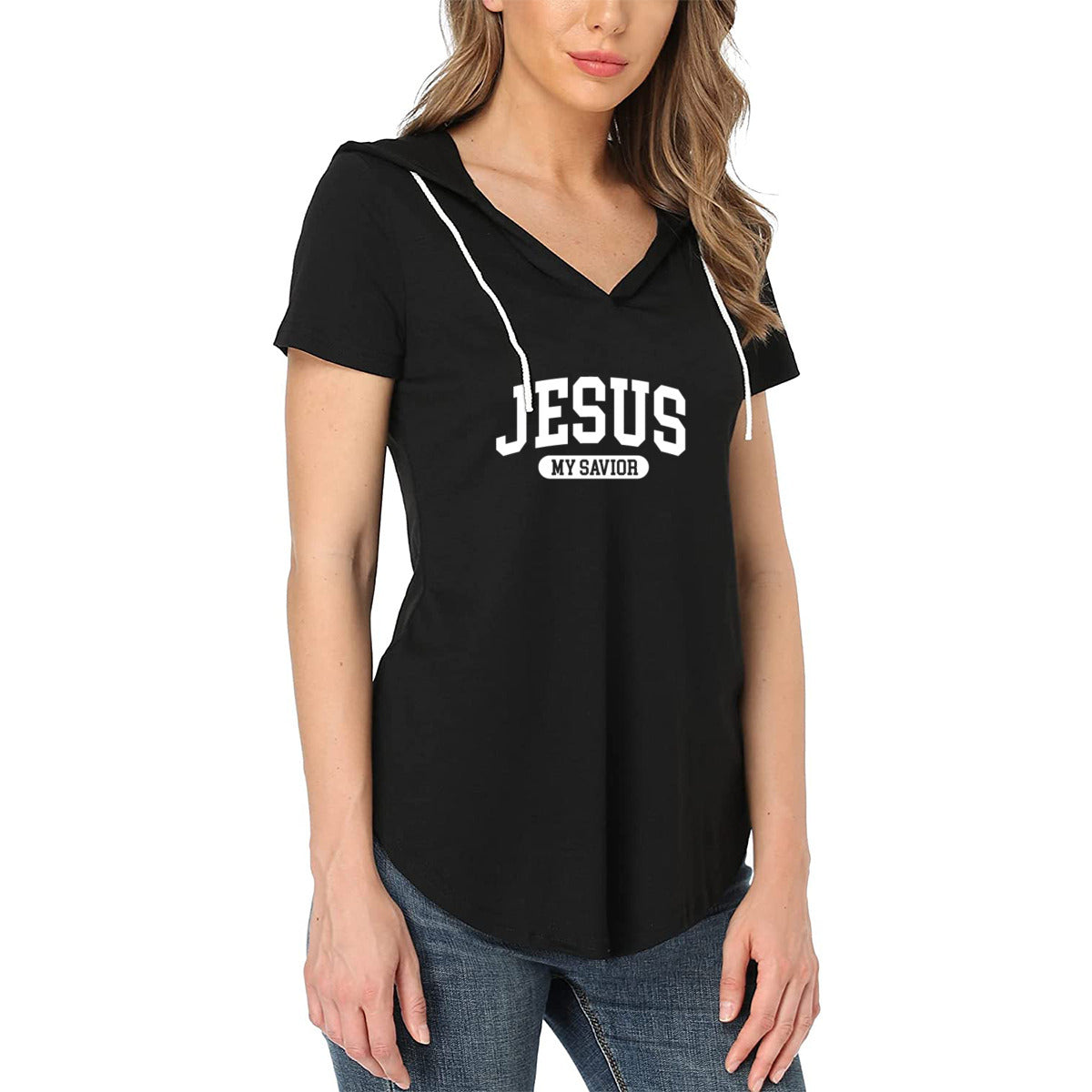 My Savior Women's Christian Workout Gym Hoodie T-Shirt | Short Sleeve V-Neck Activewear