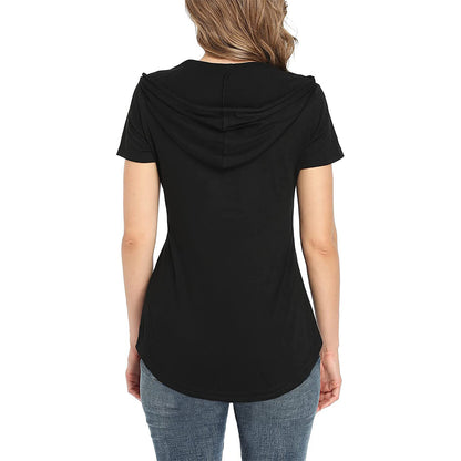 - Deep V-neck solid color drawstring sexy loose sweatshirt, casual basic women's hoodie