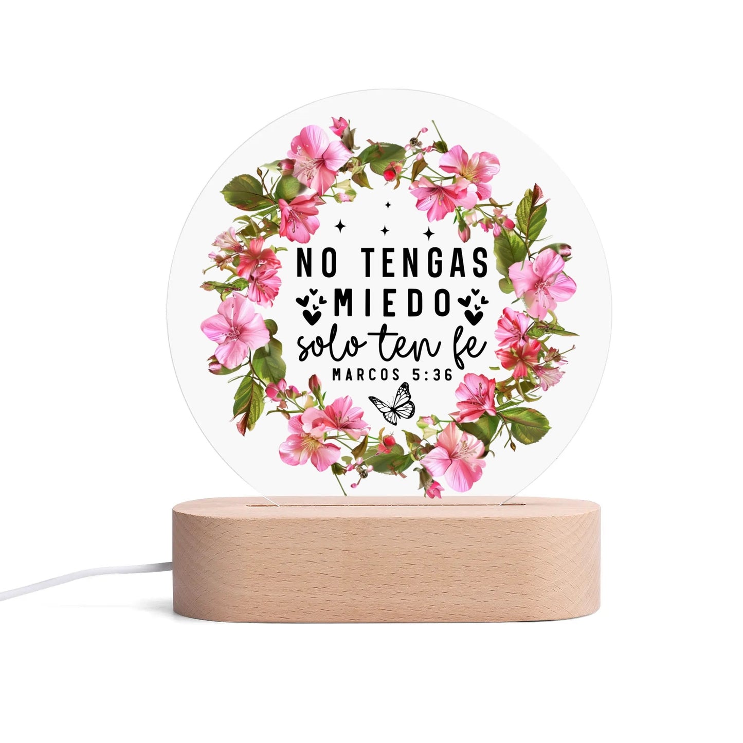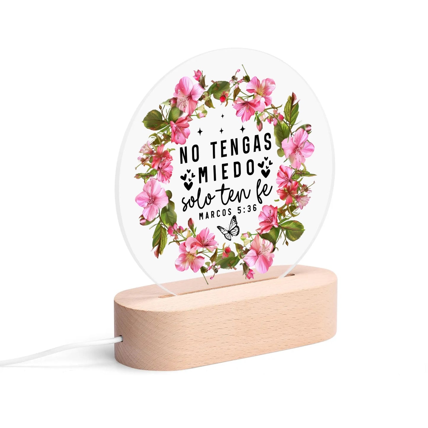 Marcos 5:36 No Tengas Miedo Solo Ten Fe Spanish Christian Acrylic Round Lamp Night Light Christian Gift Idea