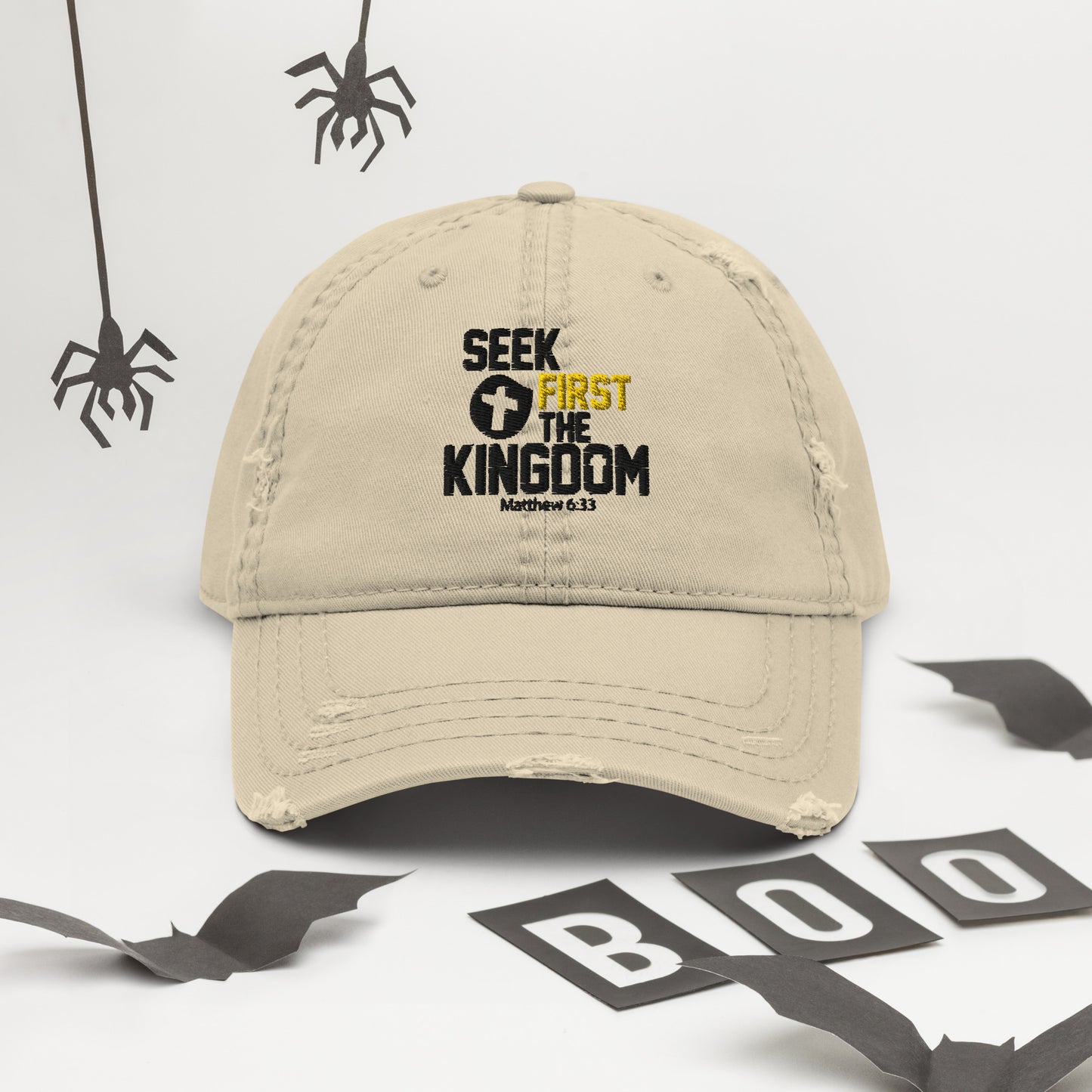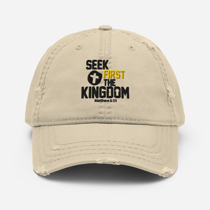 Seek First The Kingdom Adult Christian Distressed Dad Hat