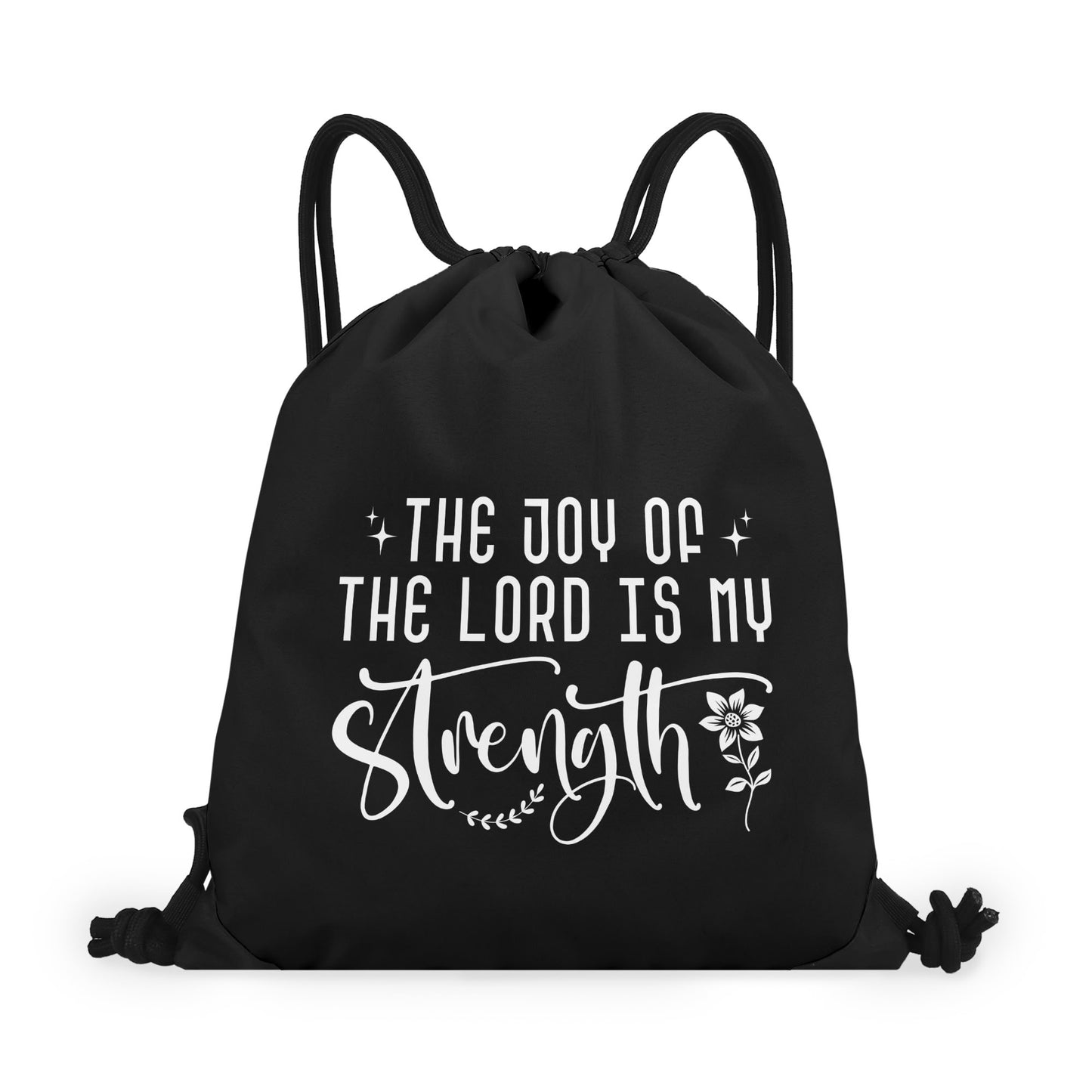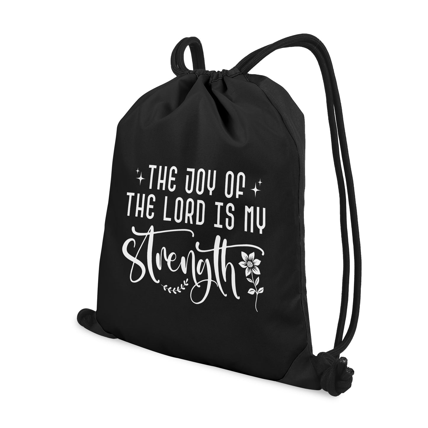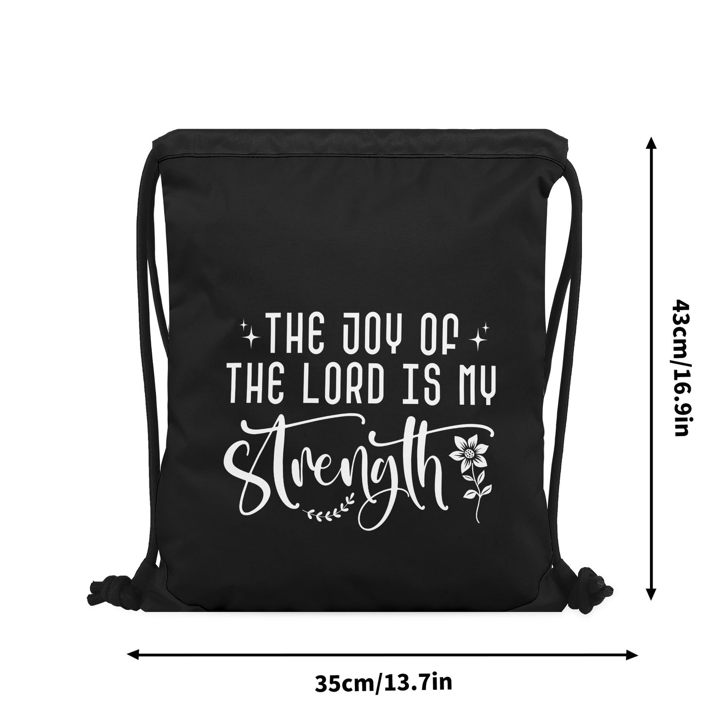 HIS Joy Is My Strength Black  Drawstring Bag(Single-Sided Print)