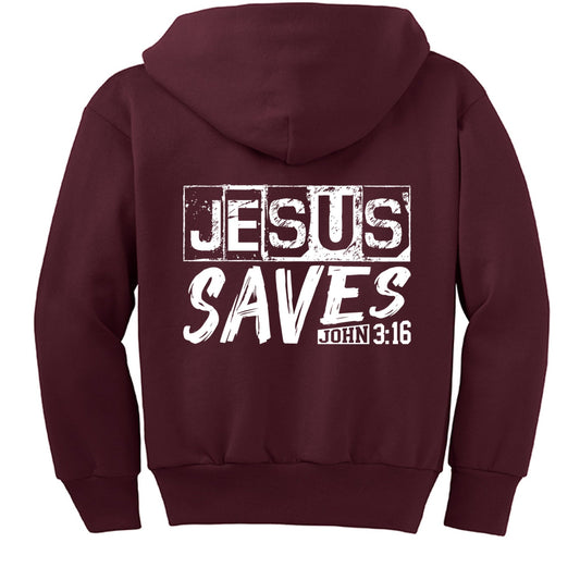 He Saves Youth Christian Full-Zip Fleece Hooded Sweatshirt