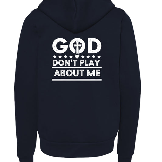 He Doesn’t Play About Me Youth Christian Full-Zip Hooded Sweatshirt