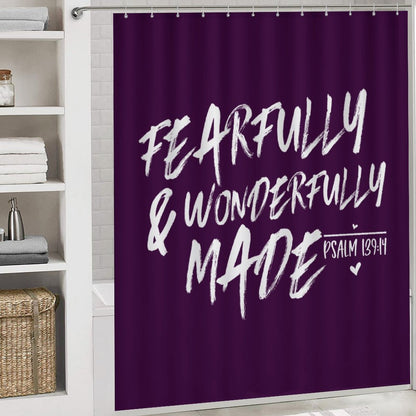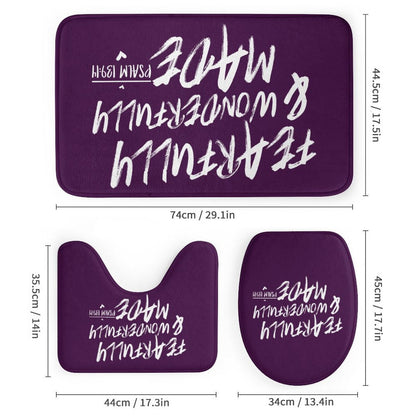 Fearfully And Wonderfully Made Christian Shower Curtain Set with a bath rug, a contour rug and a toilet lid