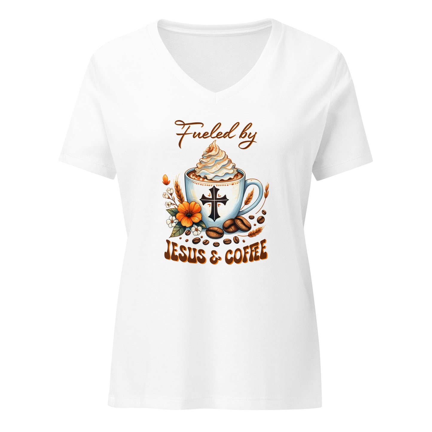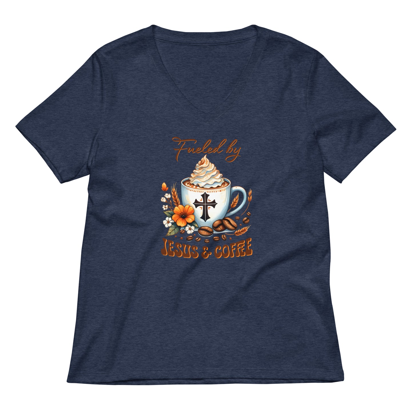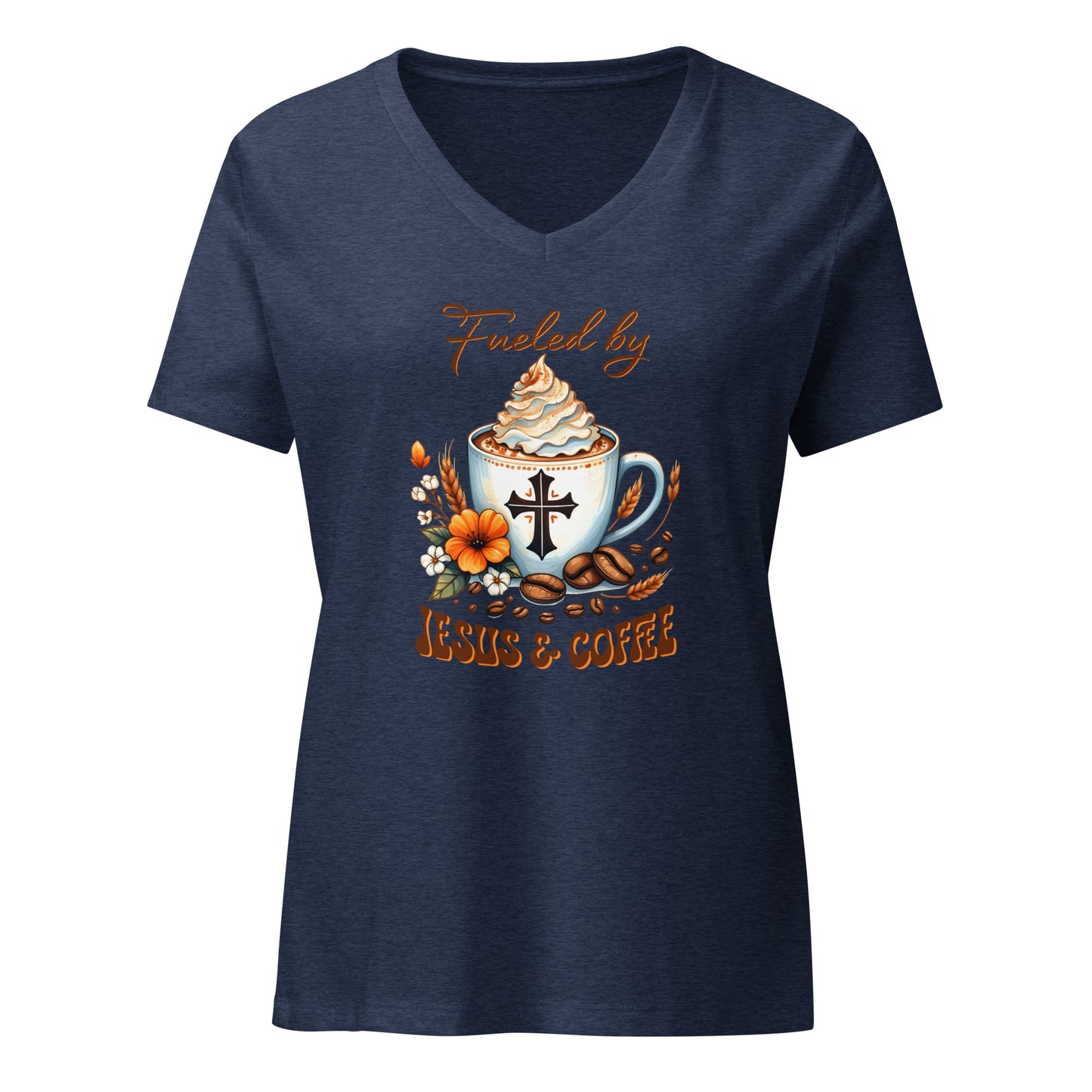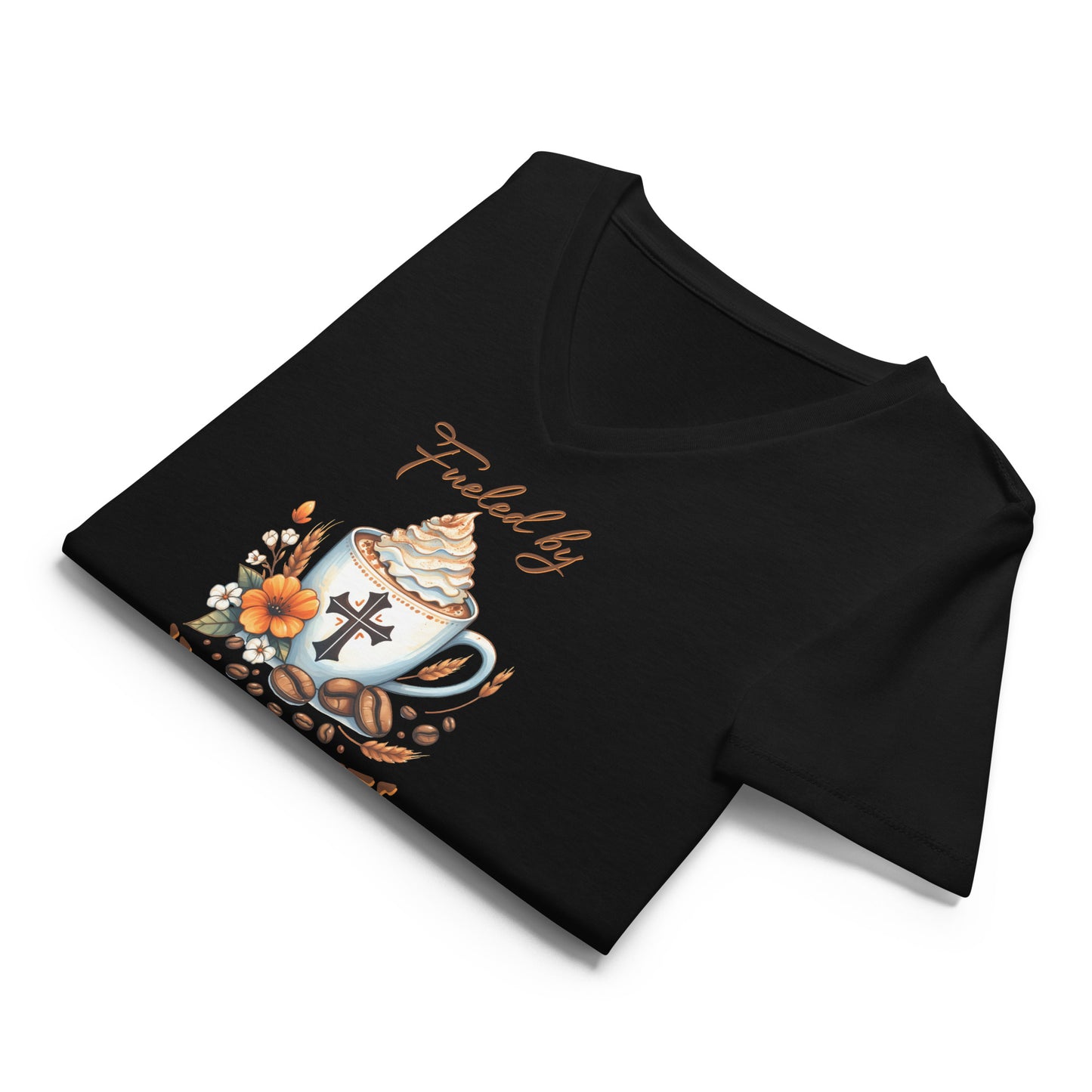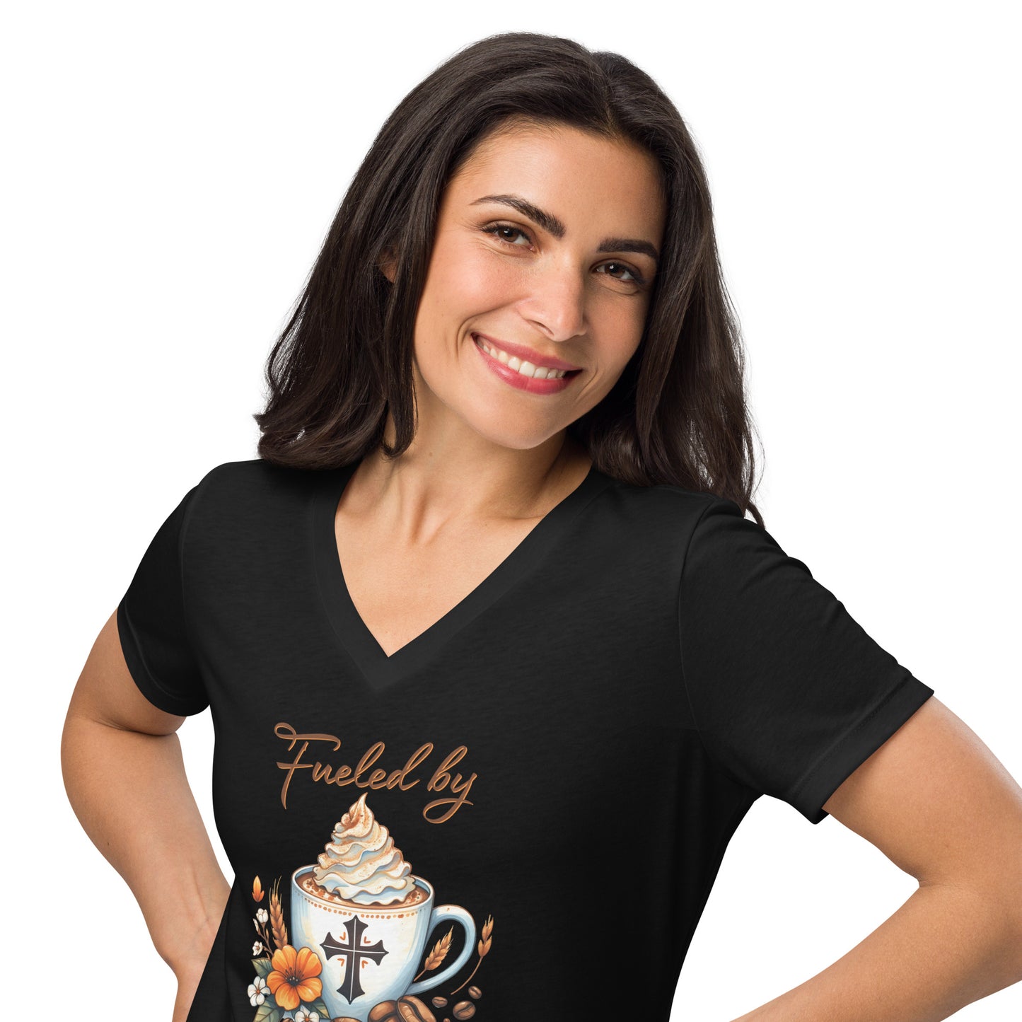 Fueled By Him And Coffee Women’s Christian Relaxed V neck T-shirt