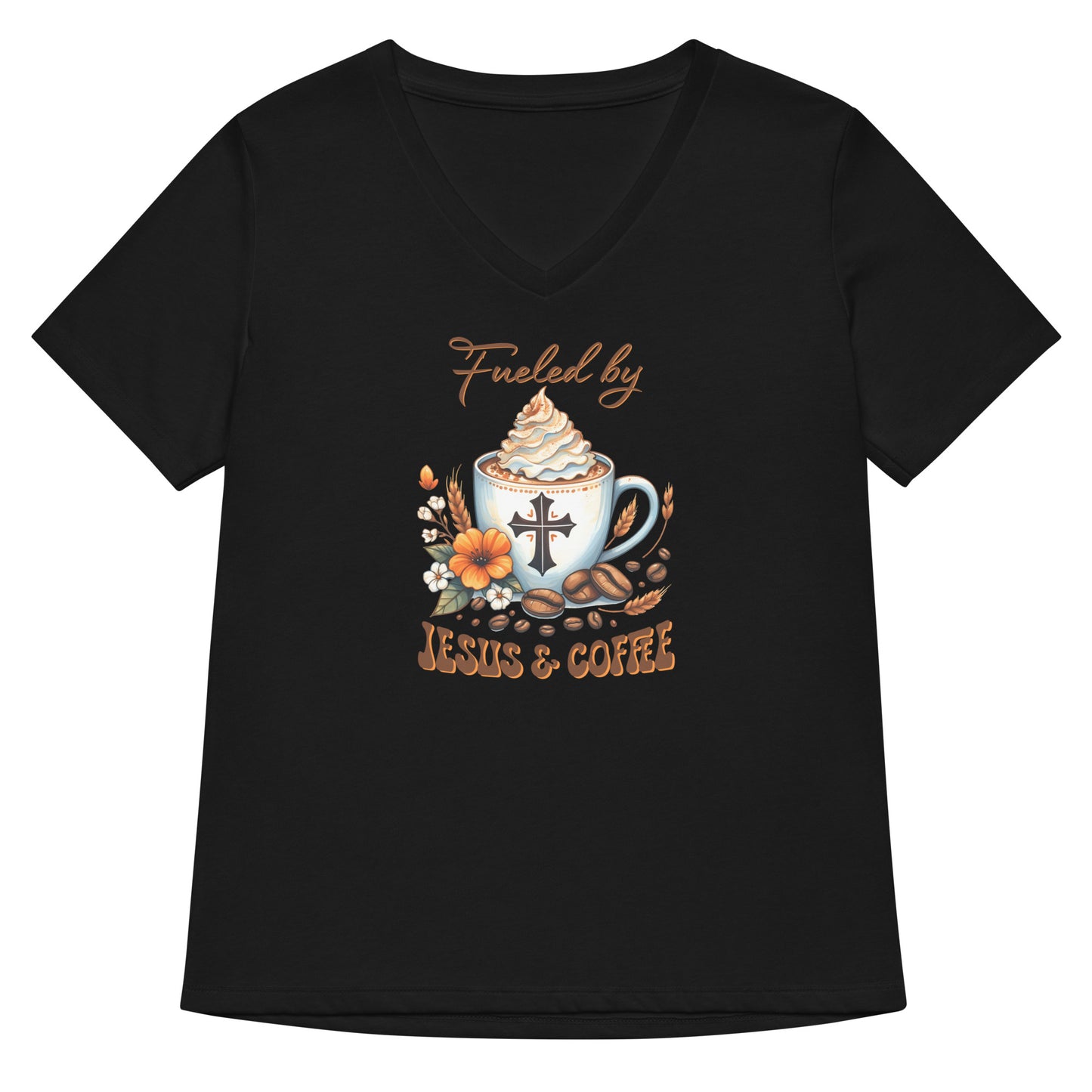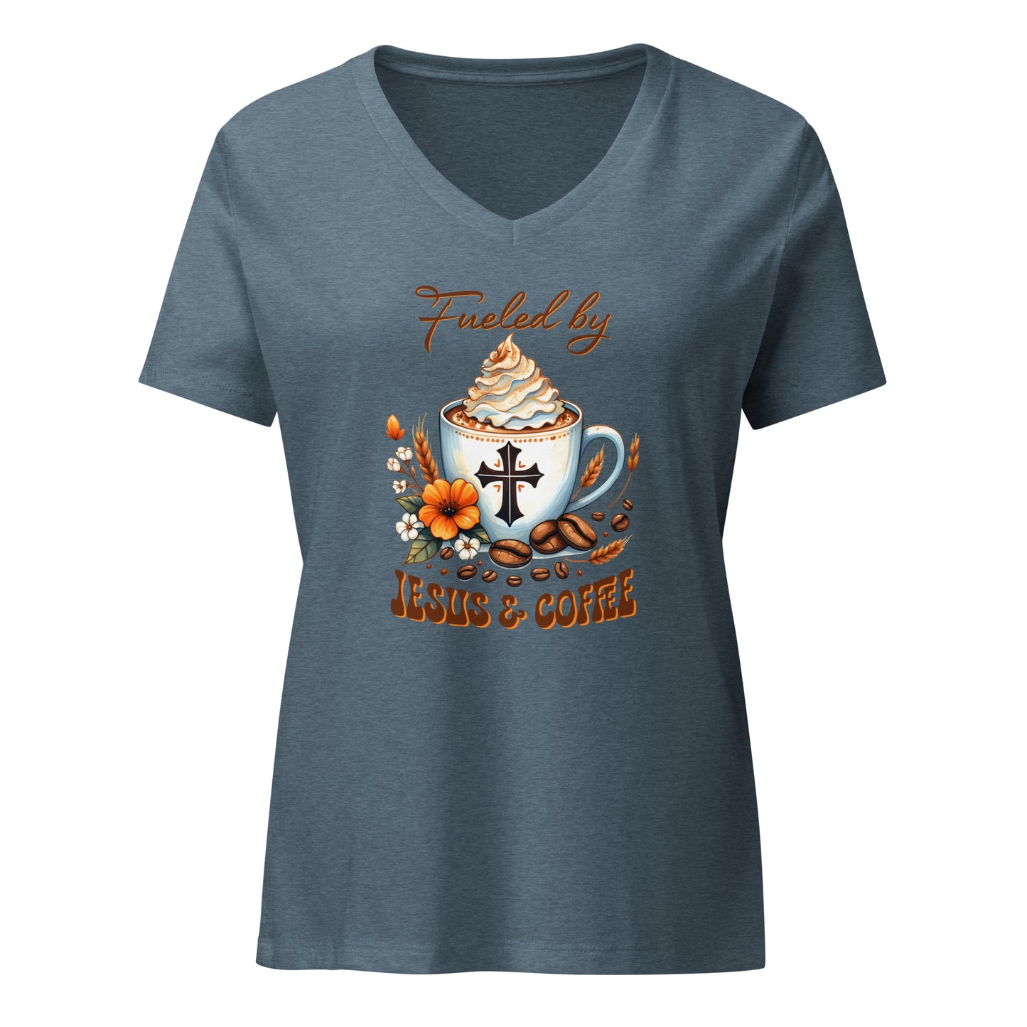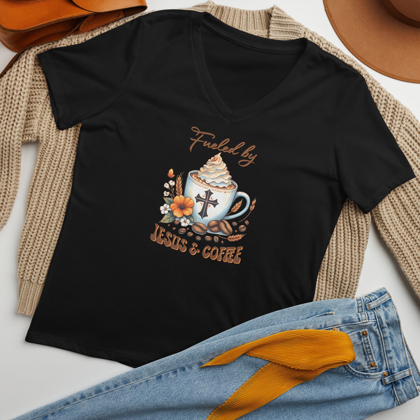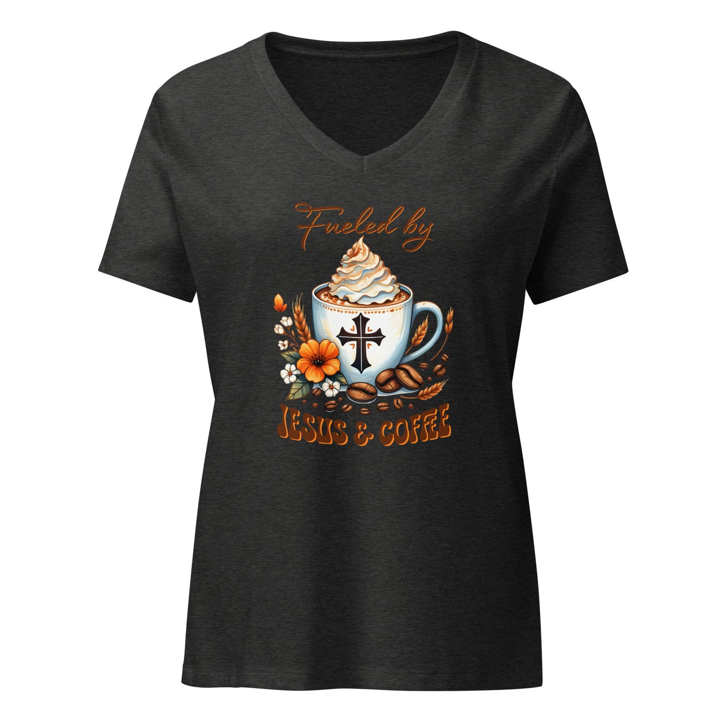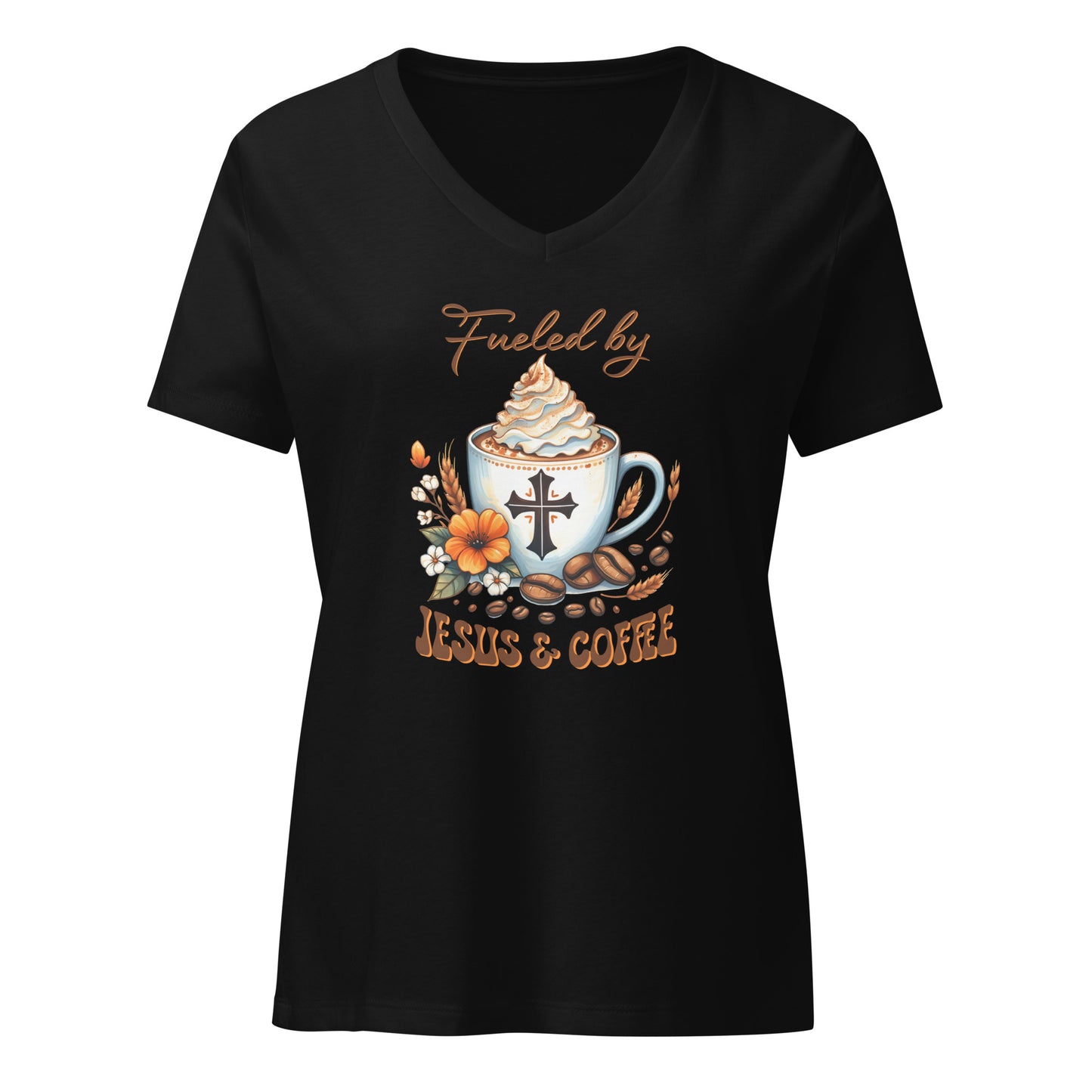 Fueled By Him And Coffee Women’s Christian Relaxed V neck T-shirt