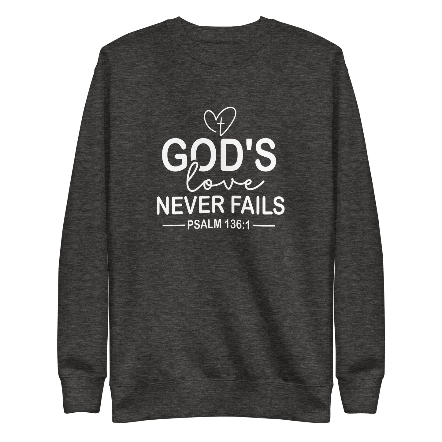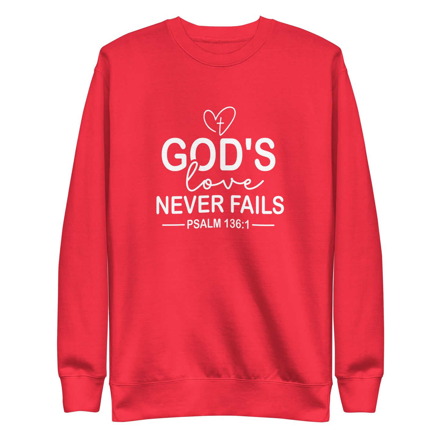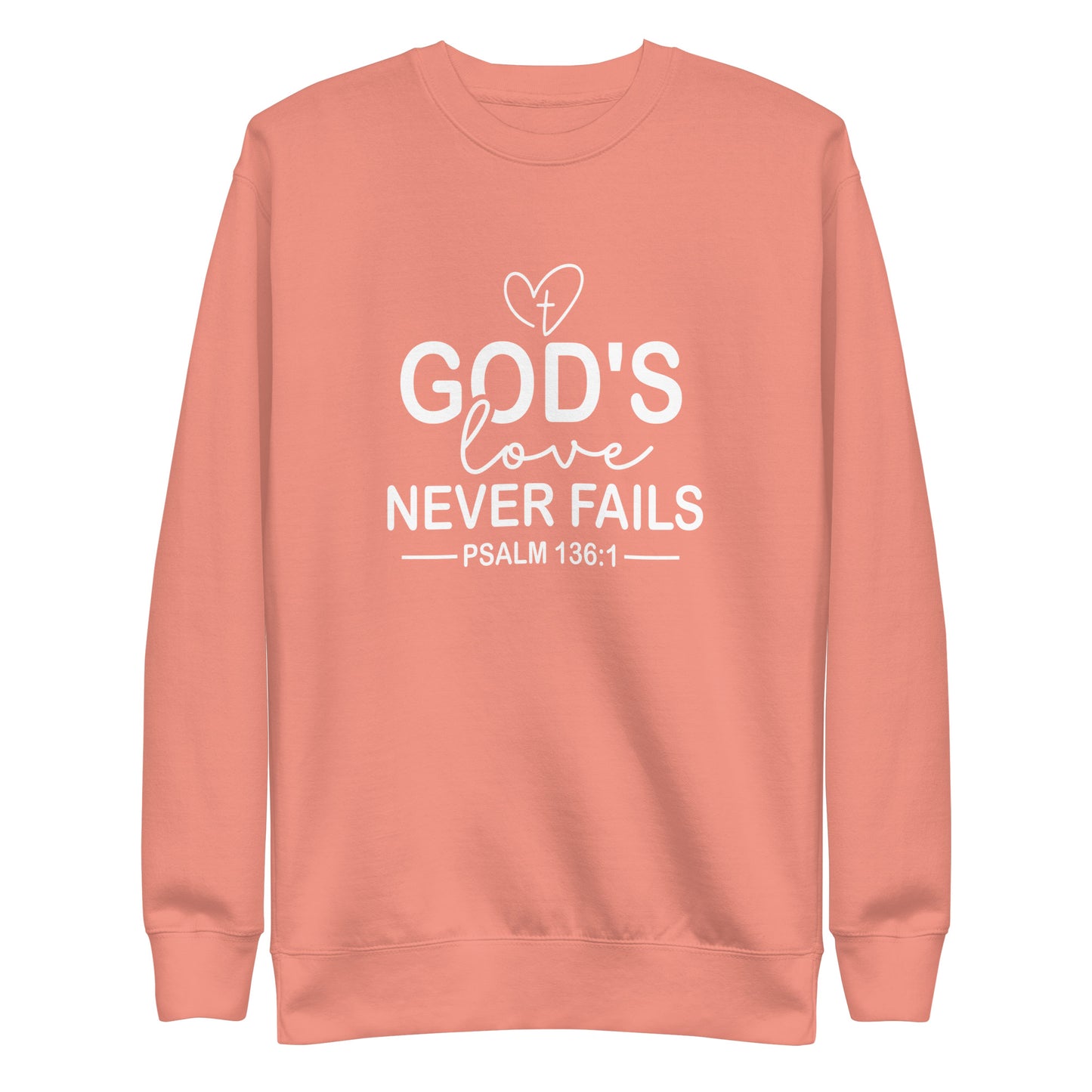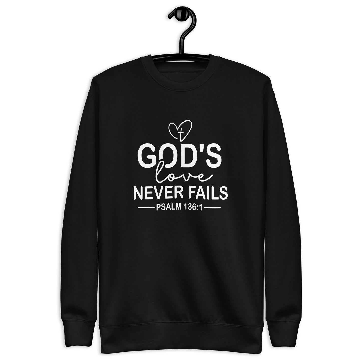 His Love Never Fails Unisex Christian Premium Crewneck Sweatshirt - Faith-Inspired Apparel
