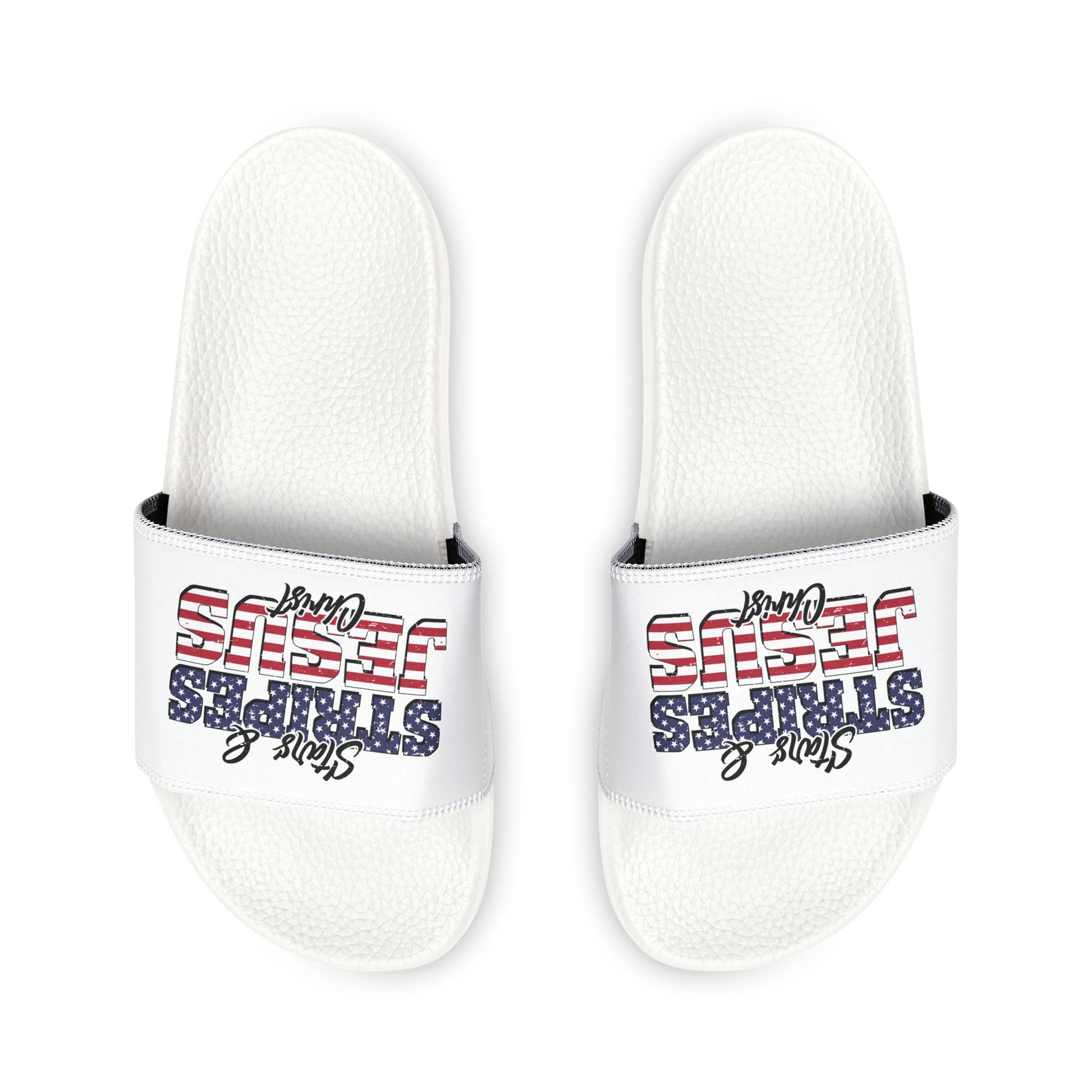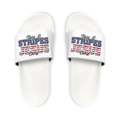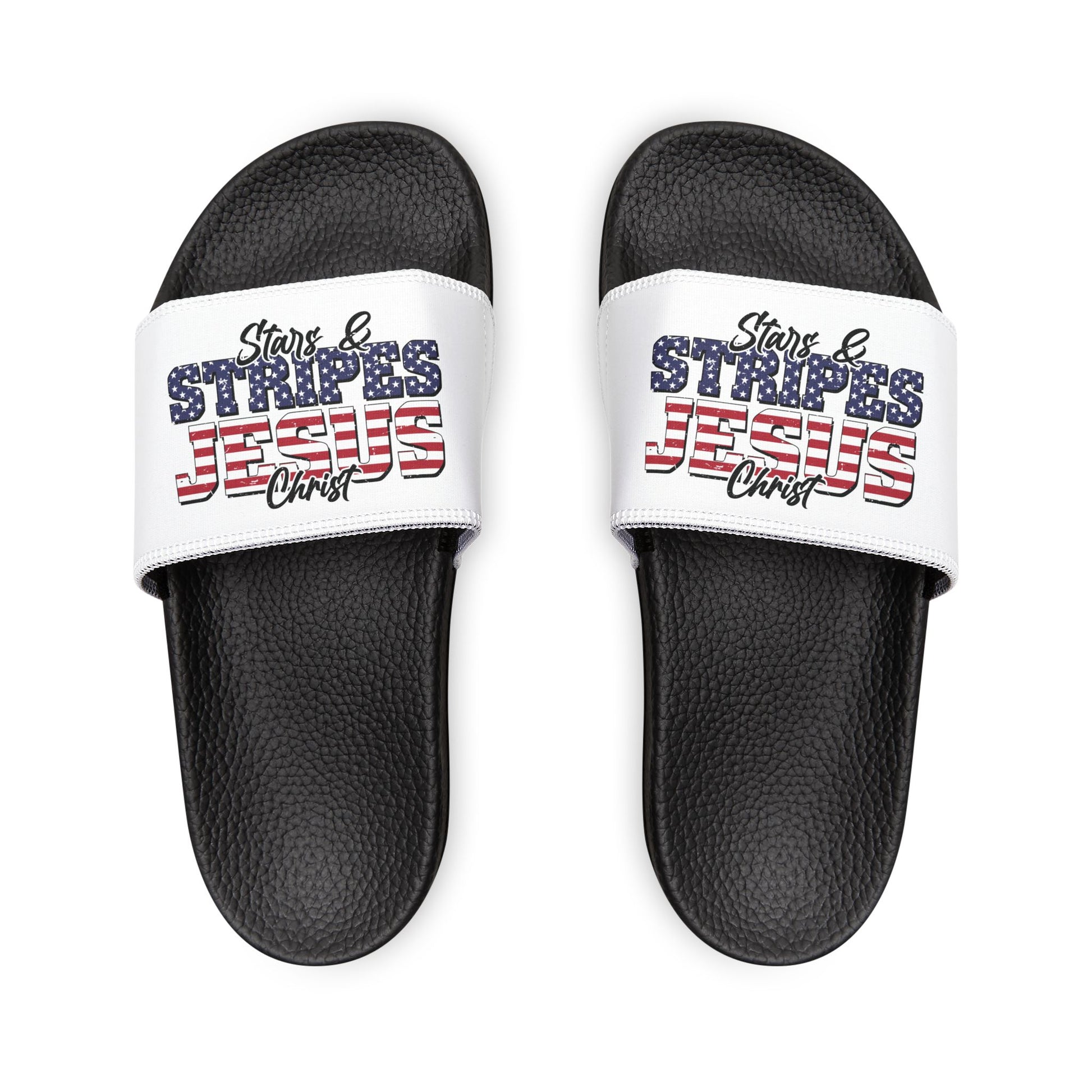 Patriotic Sandals for Women - Stars & Stripes Jesus Christ Slide Shoes, Summer Footwear, Holiday Gear, Vacation Slip-Ons