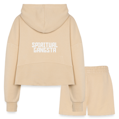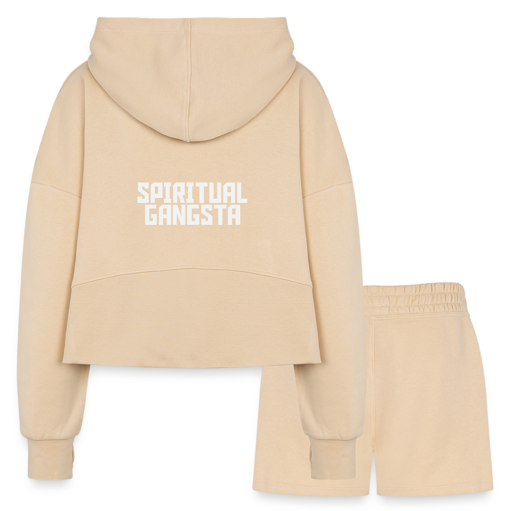 Spiritual Gangsta Women’s Christian Cropped Hoodie & Jogger Short Set Outfit - nude