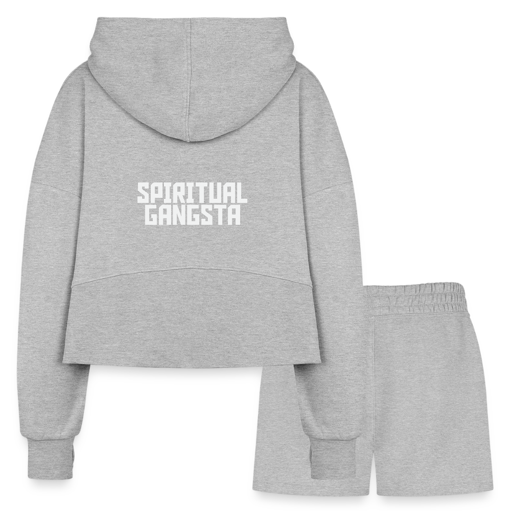 Spiritual Gangsta Women’s Christian Cropped Hoodie & Jogger Short Set Outfit - heather gray