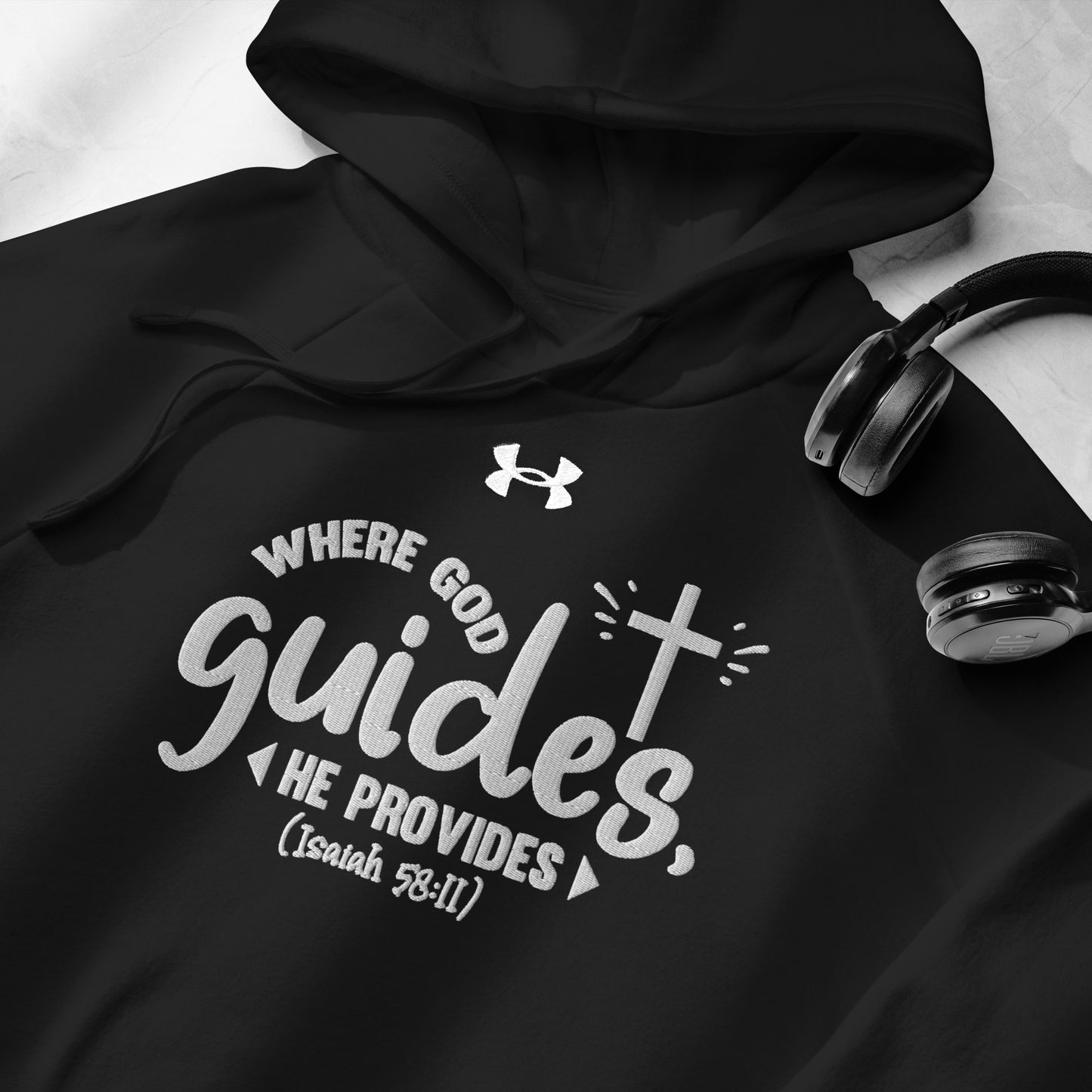 Where He Guides He Provides Unisex Christian Embroidered Under Armour® Hooded Sweatshirt (hoodie)