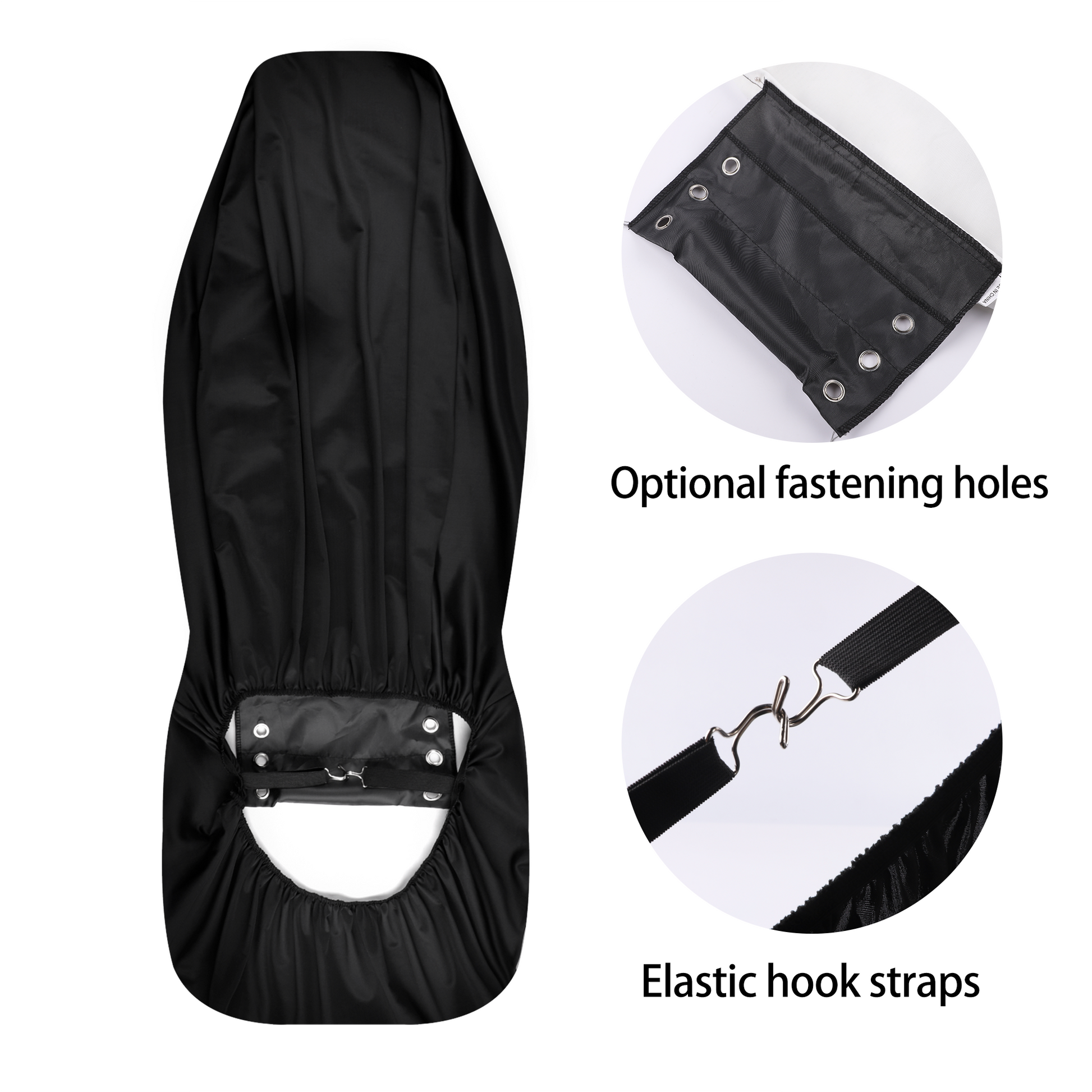 * These customizable car seat covers' stretchable fabric along with fastening and elastic backing ensures a secure snug fit.