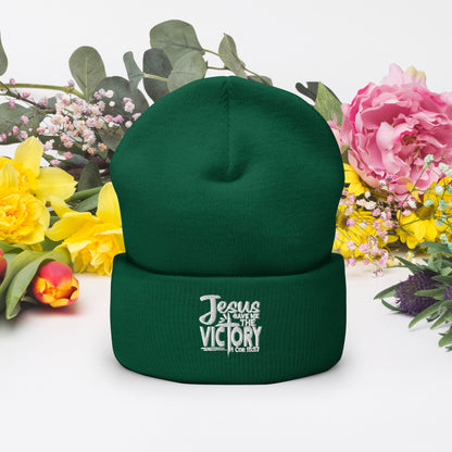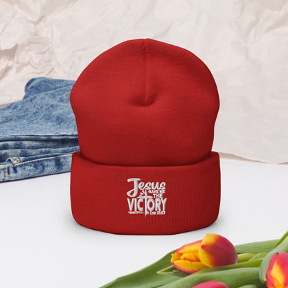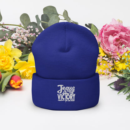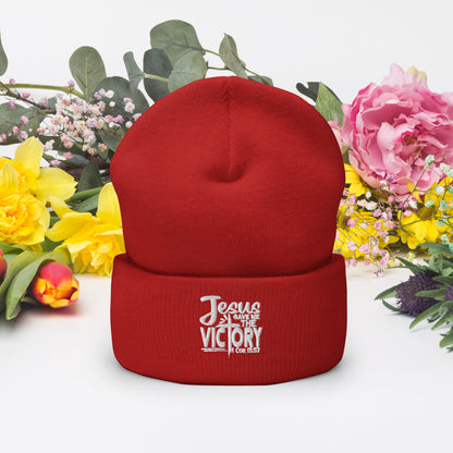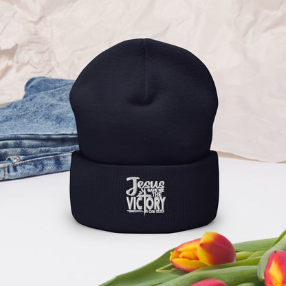 Gave Me The Victory Adult Christian Cuffed Beanie