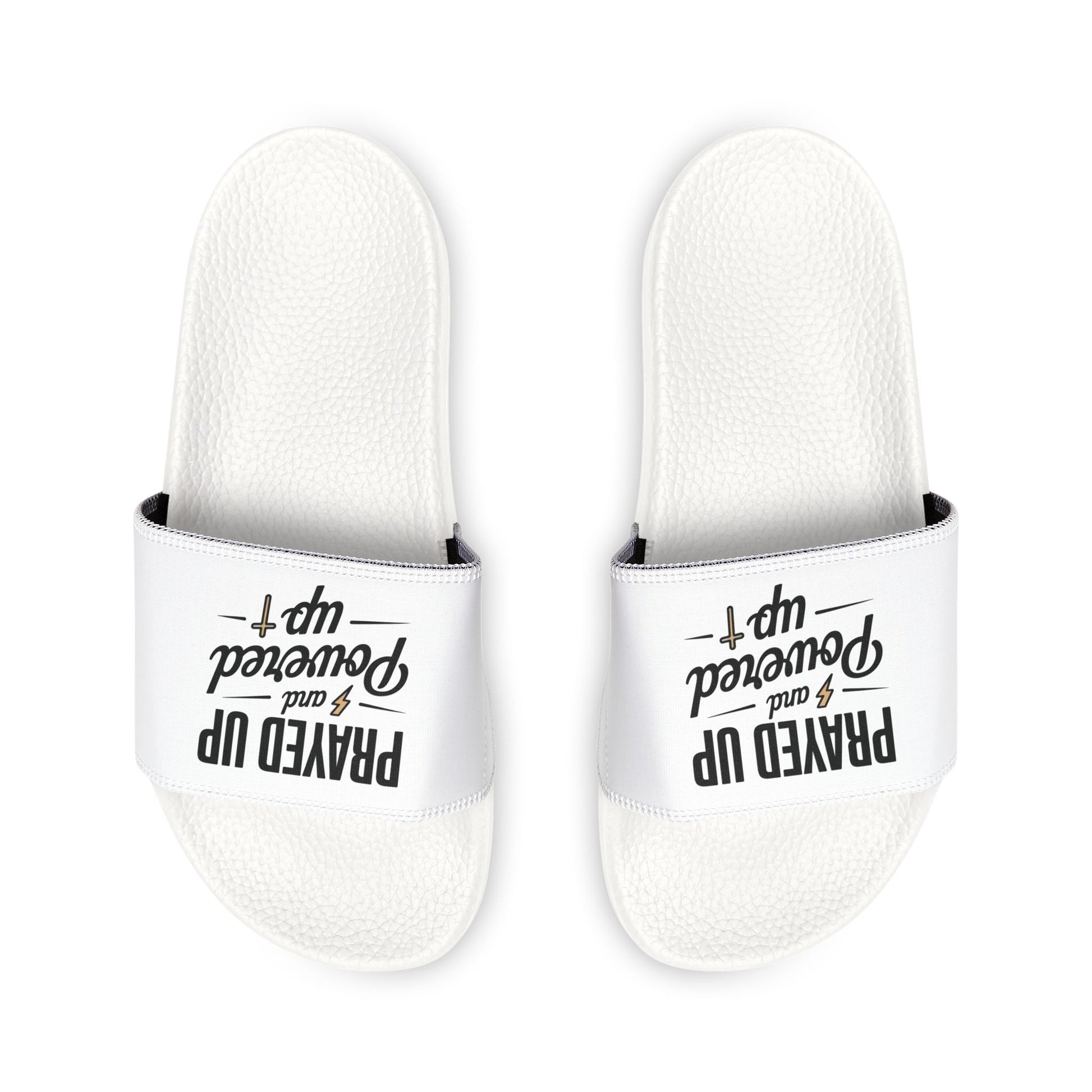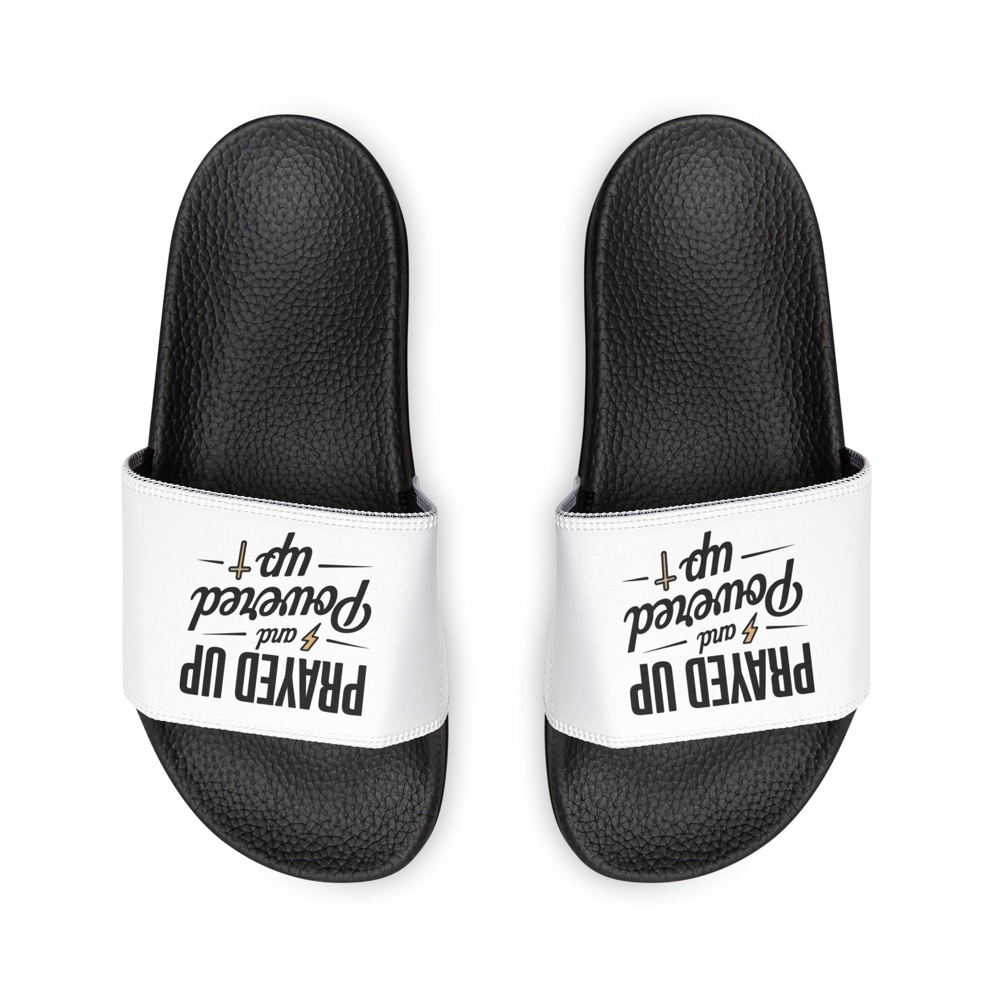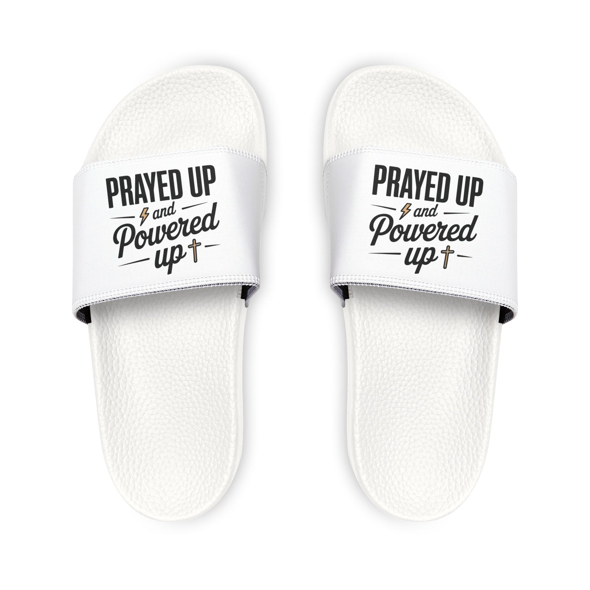 Youth Sandals - "Prayed Up and Powered Up" - Fun Summer Footwear for Kids, Beach Slides, Prayer-Themed Slippers, Gift for Young [...]