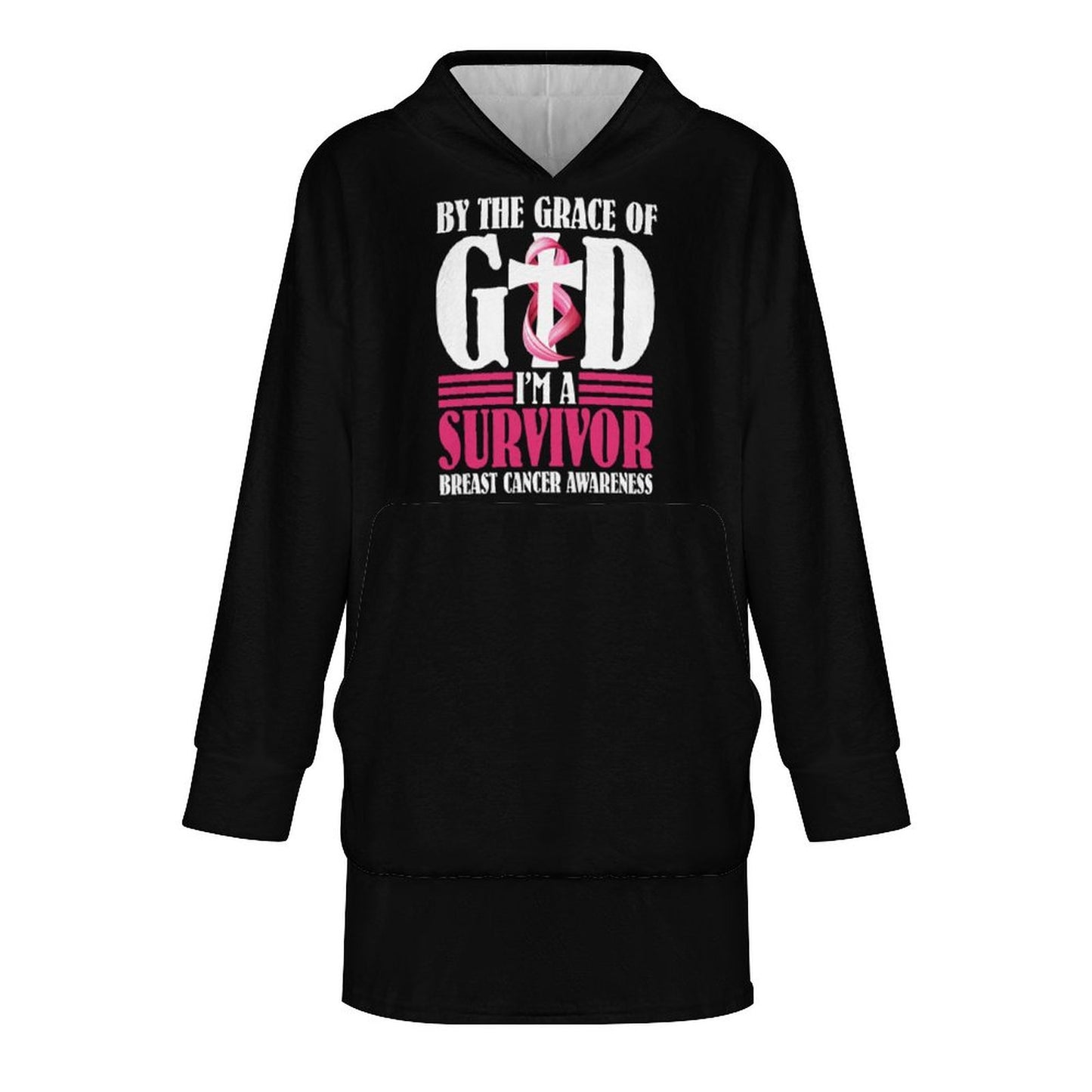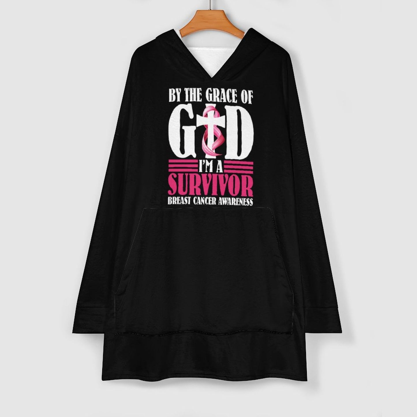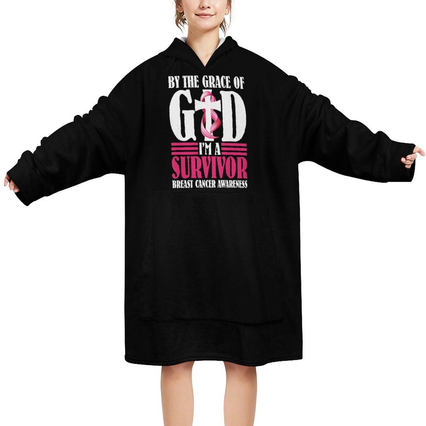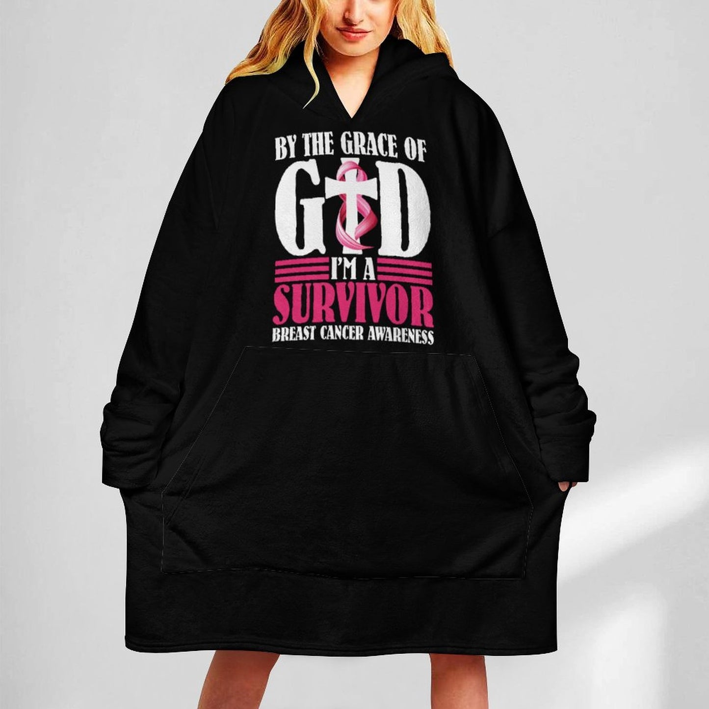 By The Grace Of God I'm A Survivor (Breast Cancer Awareness) Christian Wearable Oversized Sweater Blanket SALE-Personal Design