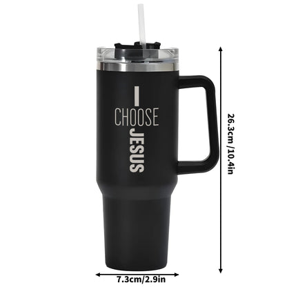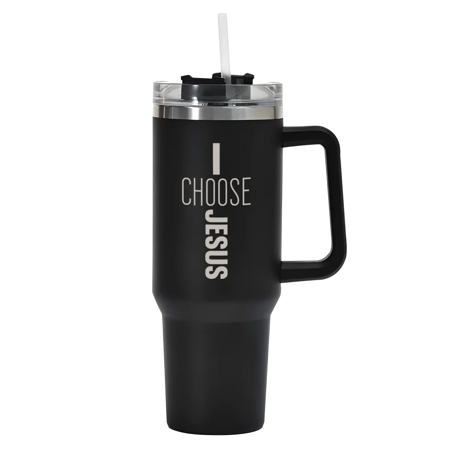 I Choose Him  40oz Stainless Steel Christian Tumbler Travel Mug with Handle and Straw for Cup Holder