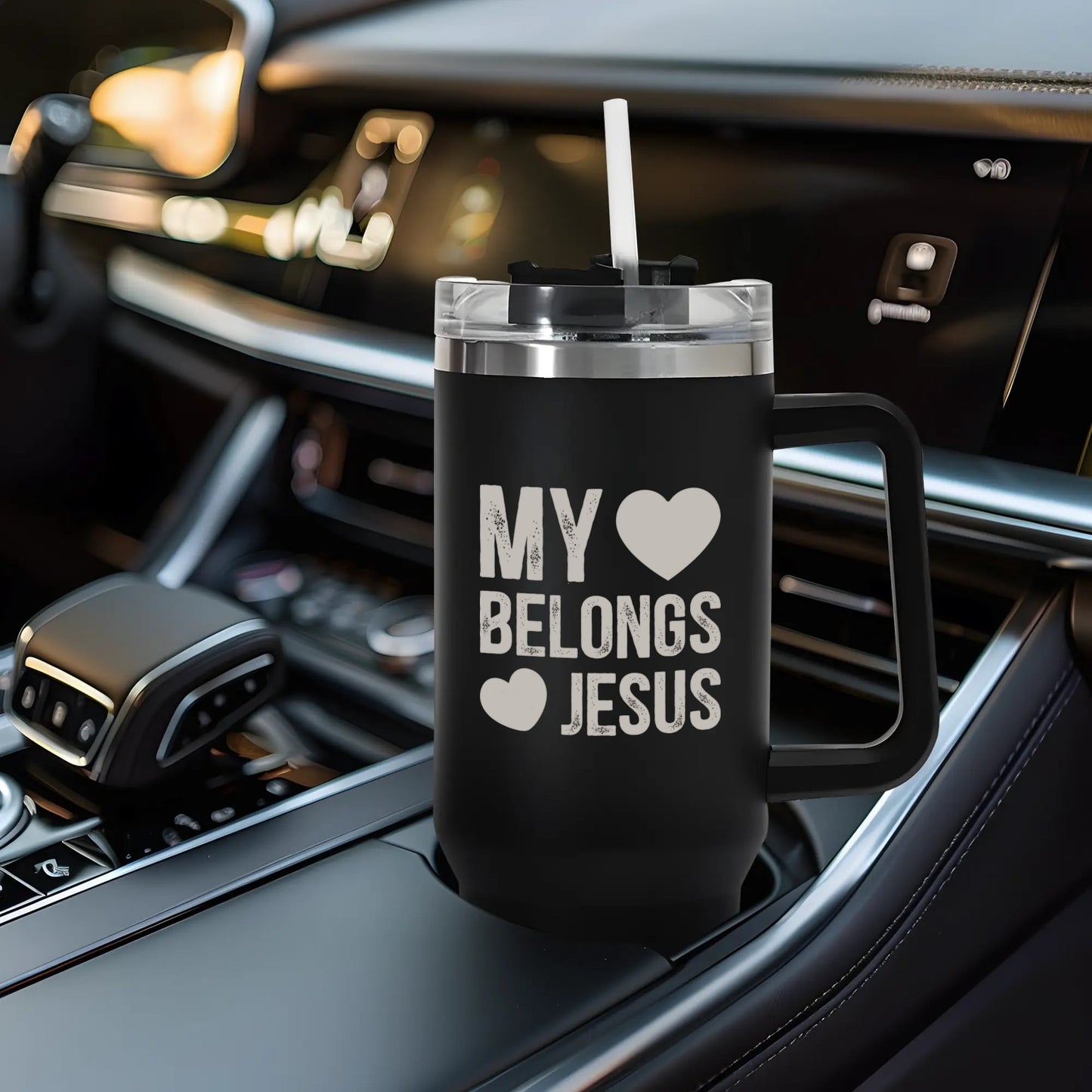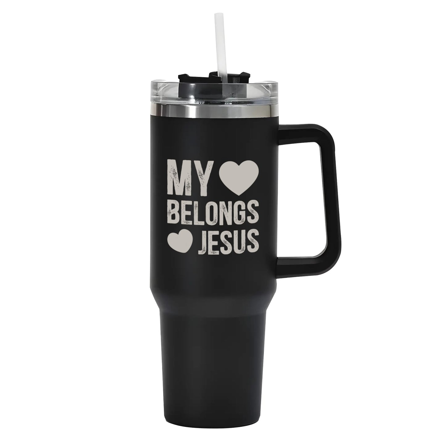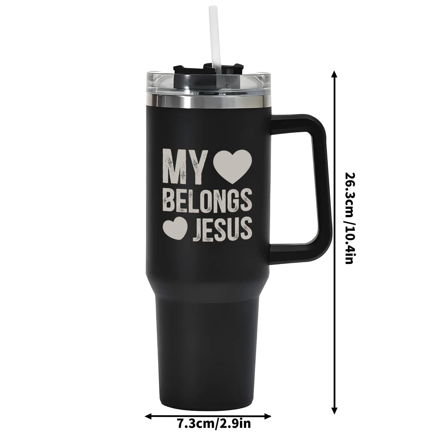 My Heart Belongs To Him 40oz Stainless Steel Christian Tumbler Travel Mug with Handle and Straw for Cup Holder