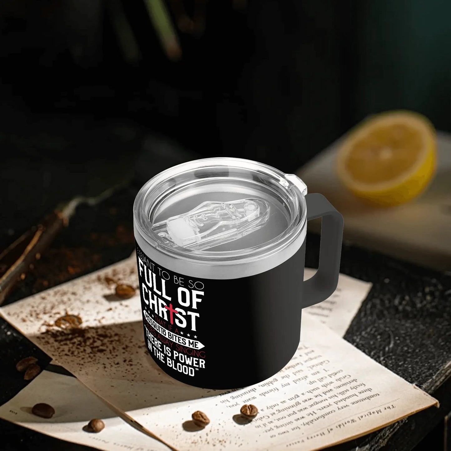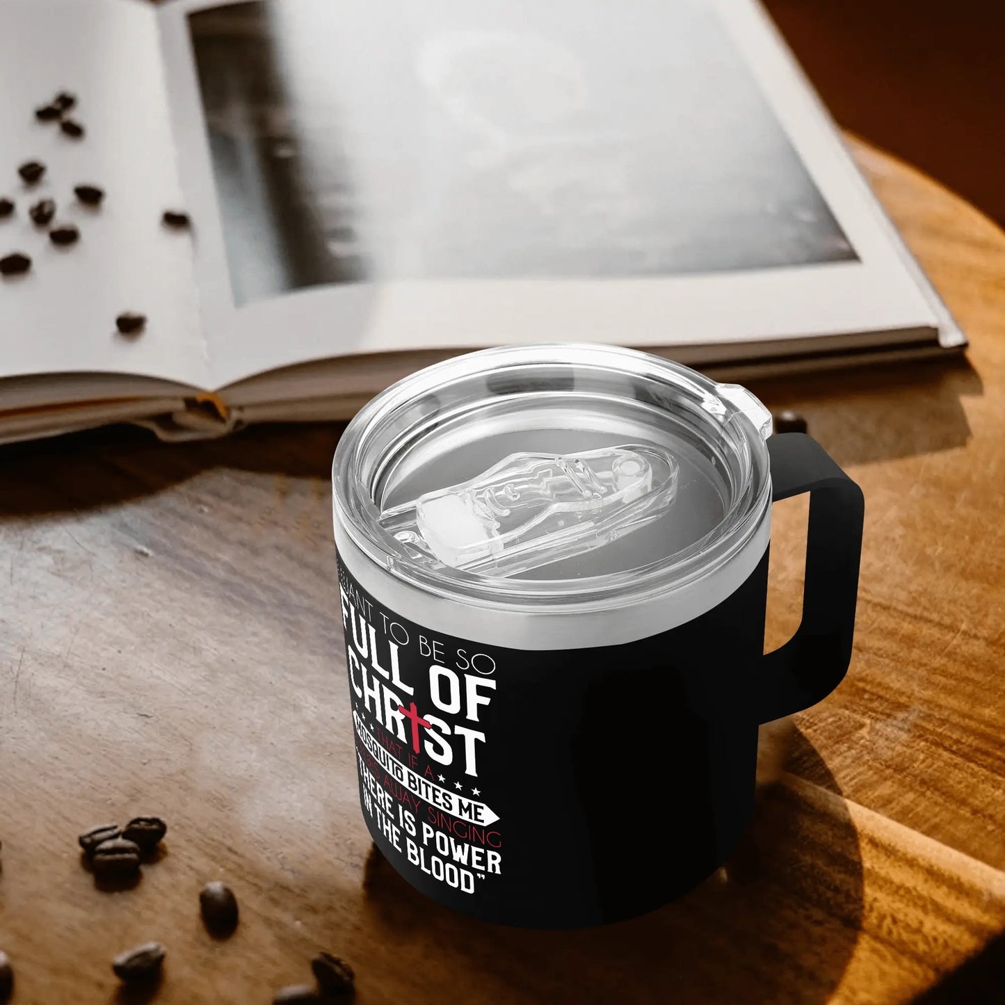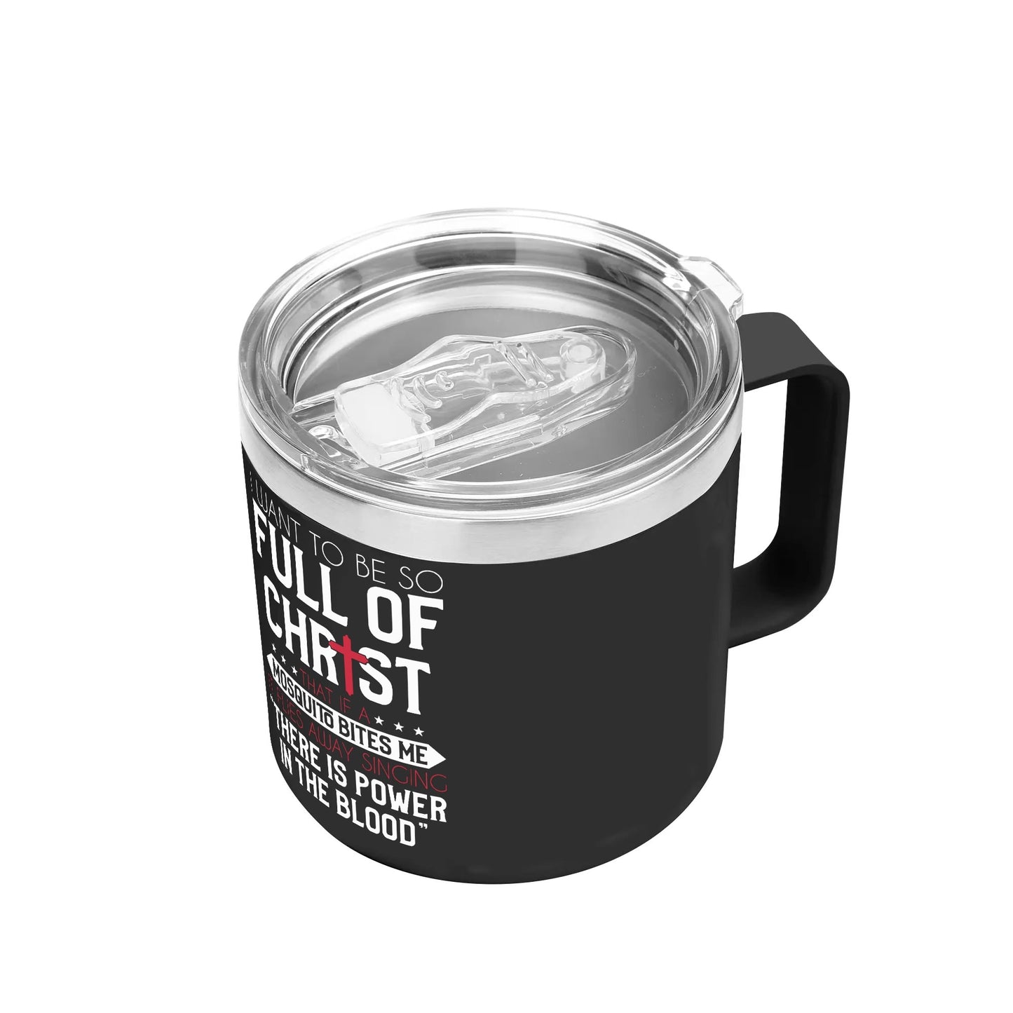 There Is Power In The Blood 14oz Stainless Steel Christian Coffee Mug Cup with Lid and Handle