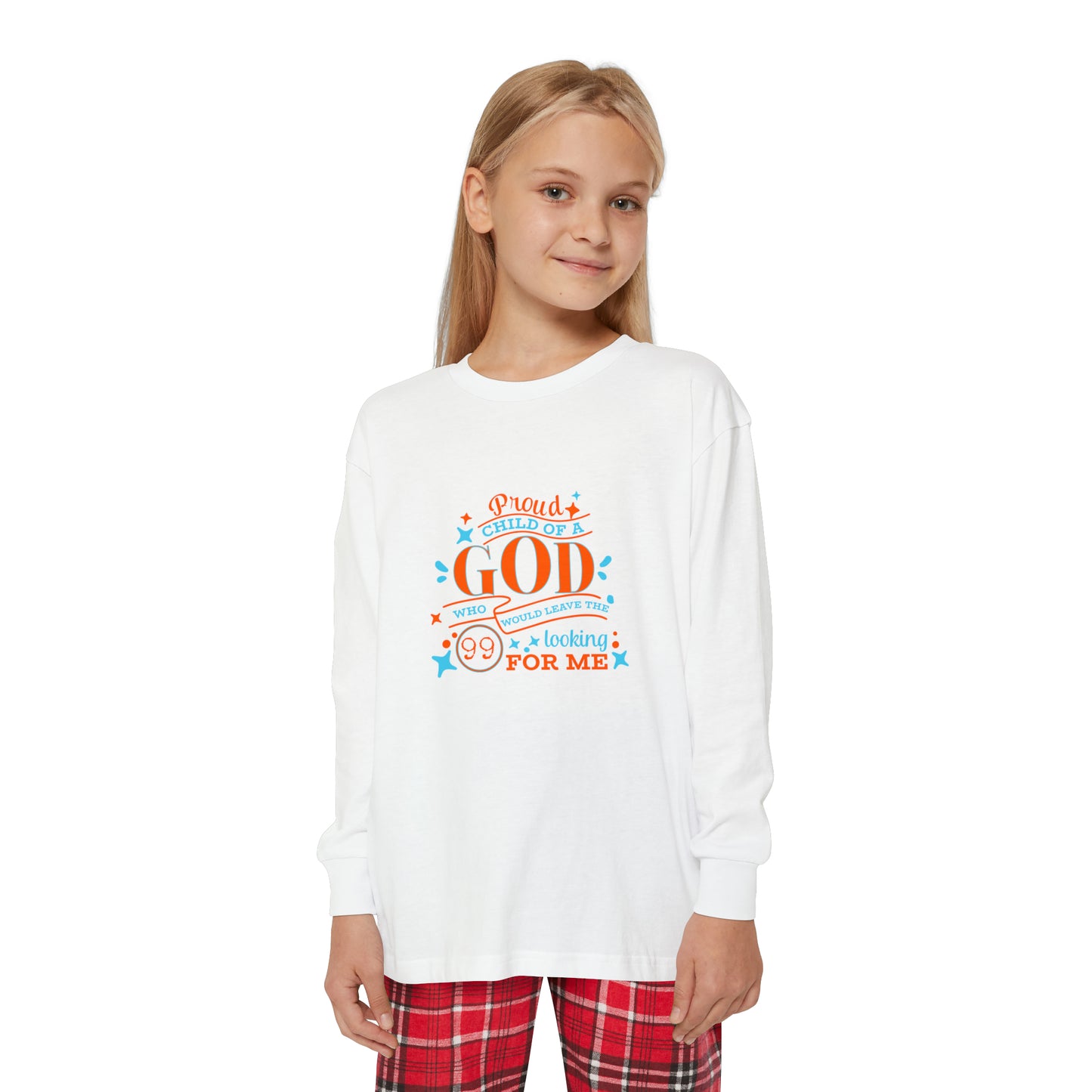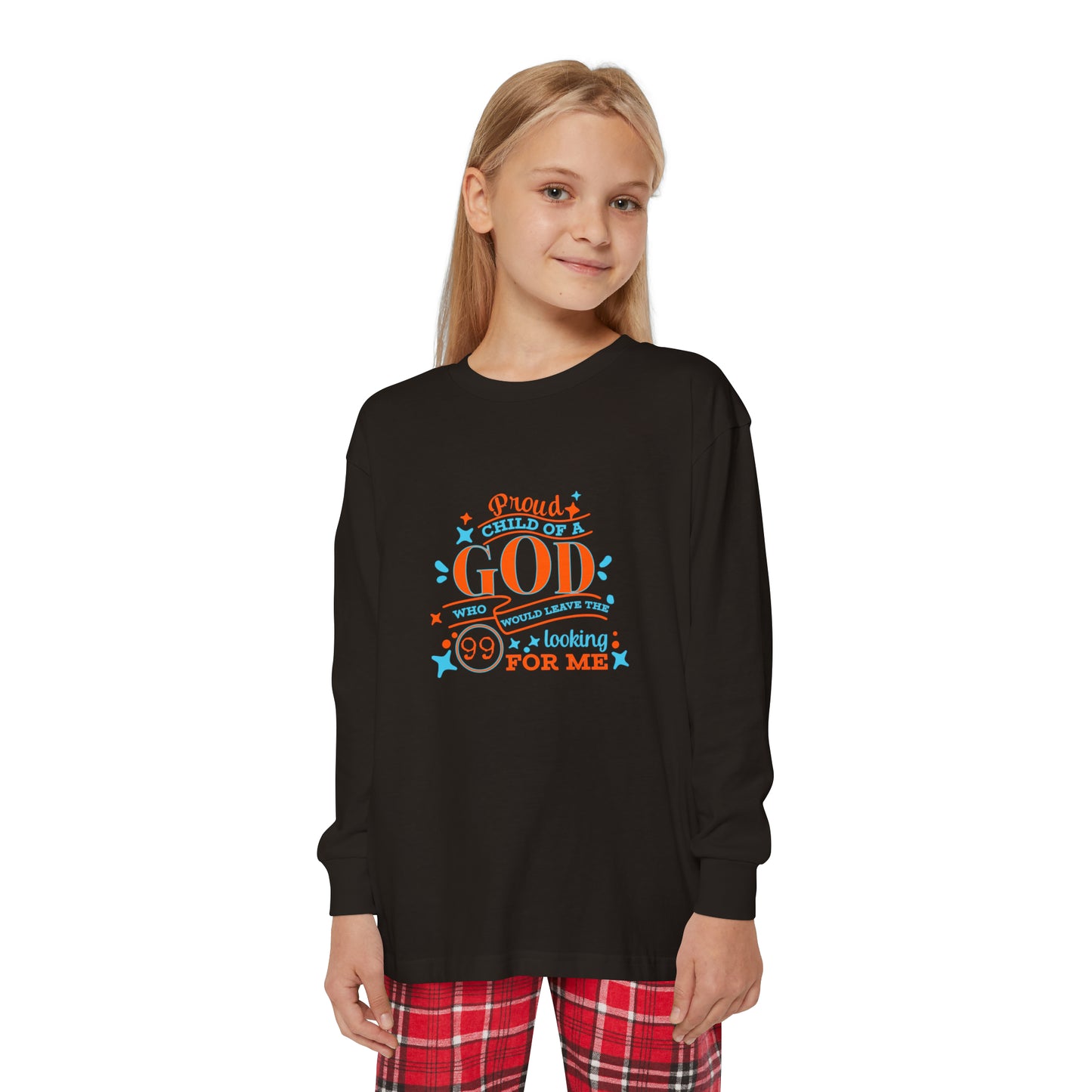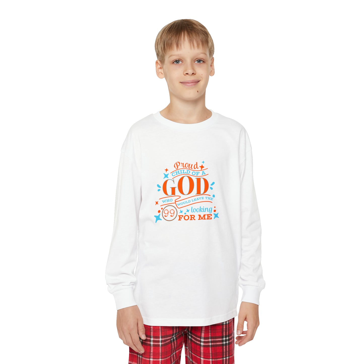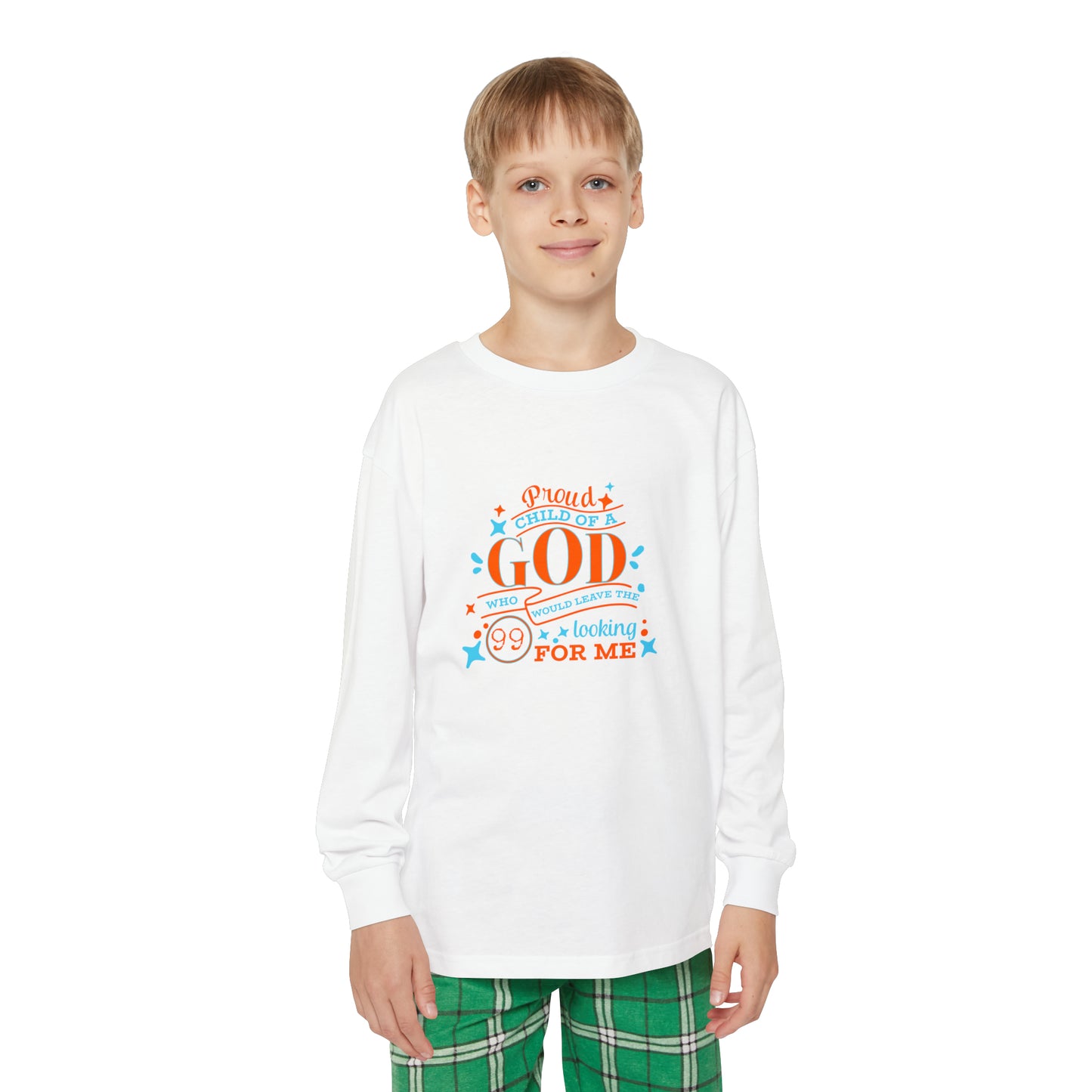 Proud Child Of A God Who Would Leave The 99 Looking For Me Youth Christian Long Sleeve Pajama Set Printify