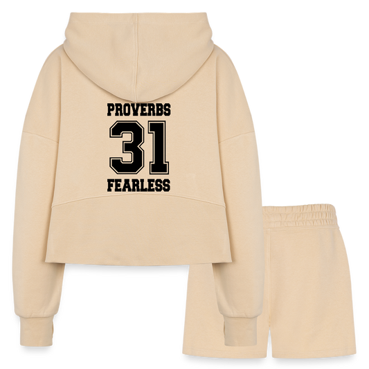 Proverbs 31 Women’s Christian Cropped Hoodie & Jogger Short Set Outfit