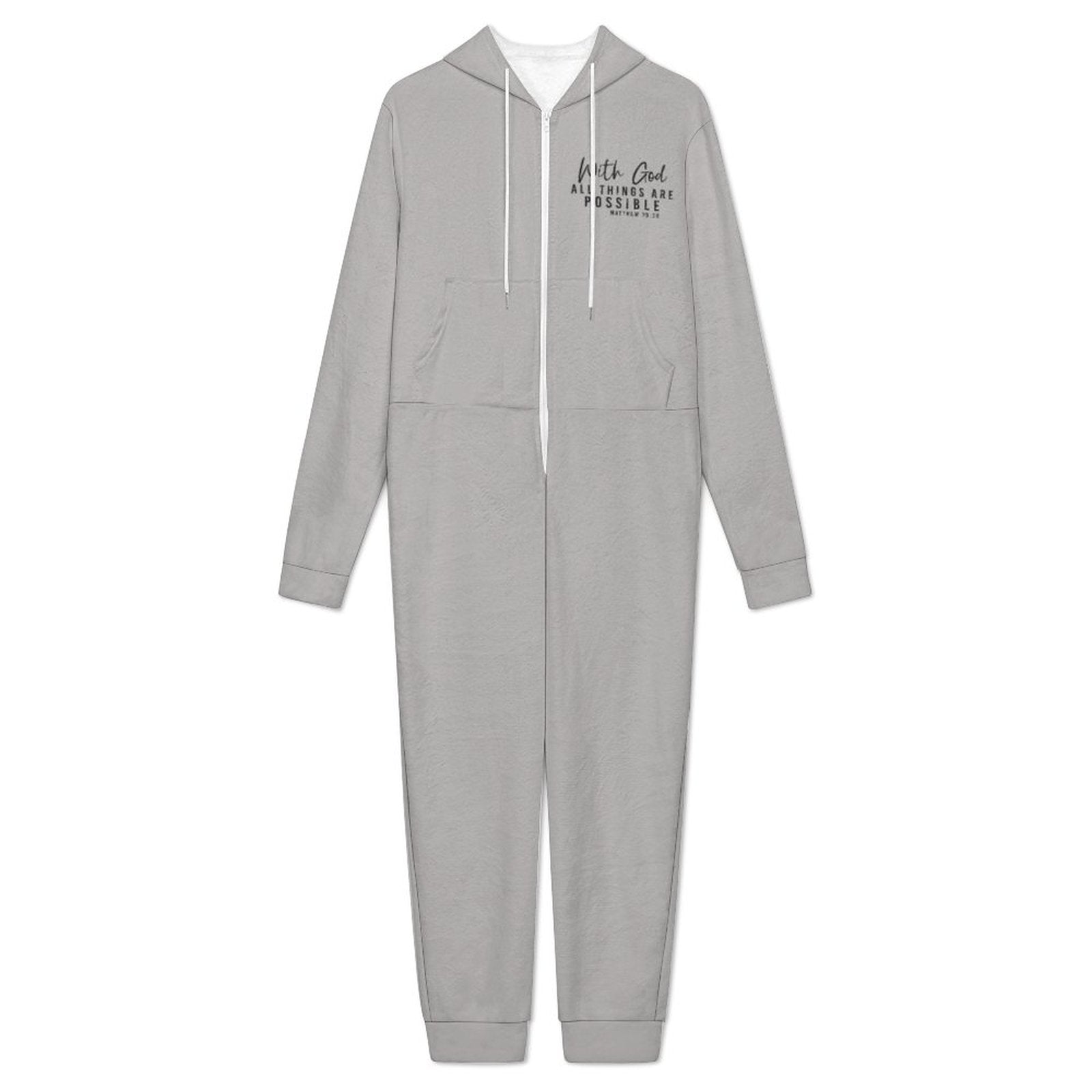 All Things Are Possible Men's Christian Flannel Zip up Jumpsuit Pajama Jumpsuit