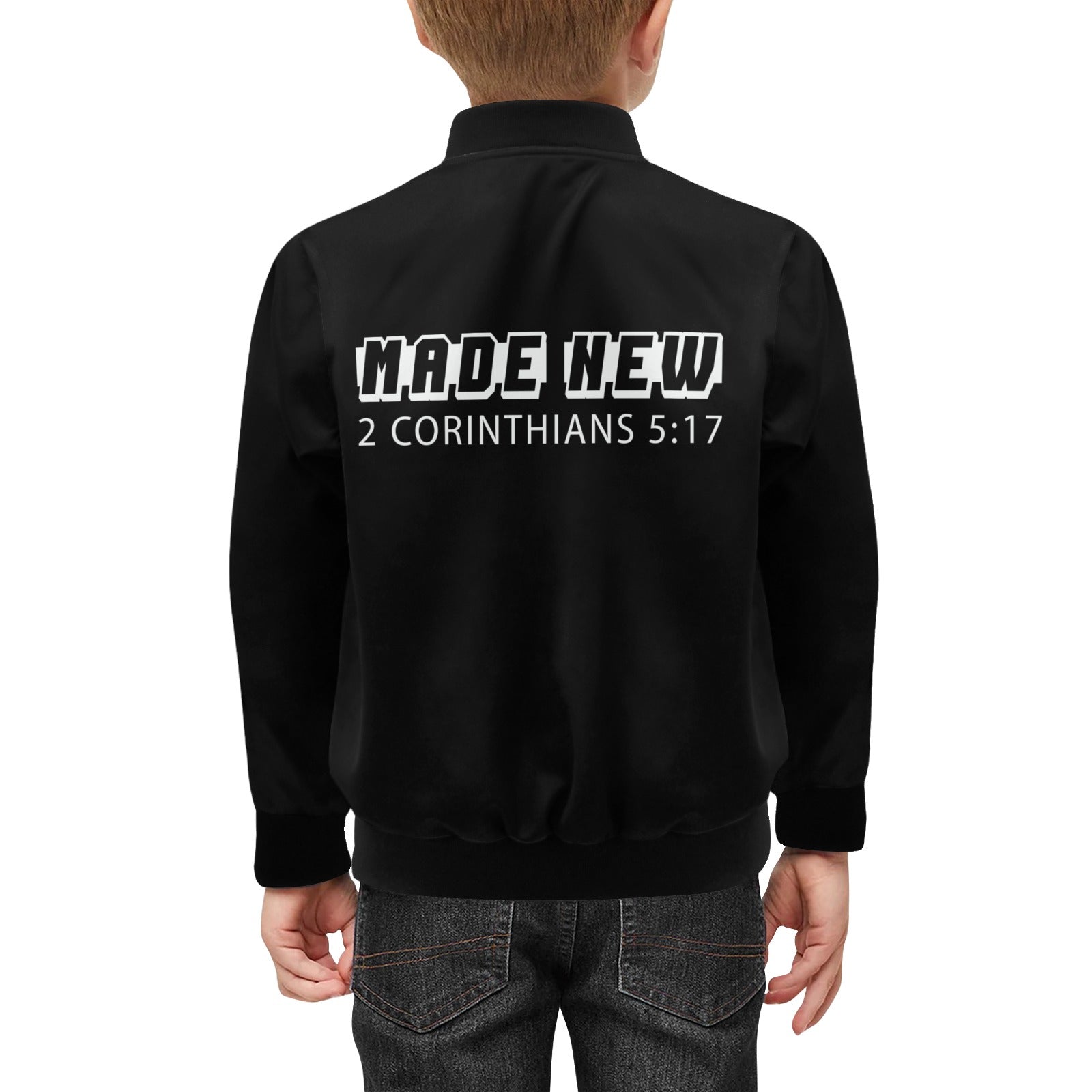 The Made New 2 Corinthians 5:17 Kids' Bomber Jacket offers a timeless design and durable construction, making it a versatile choice for street wear or outdoor adventures. With its practical features, it's the perfect addition to your child's wardrobe.