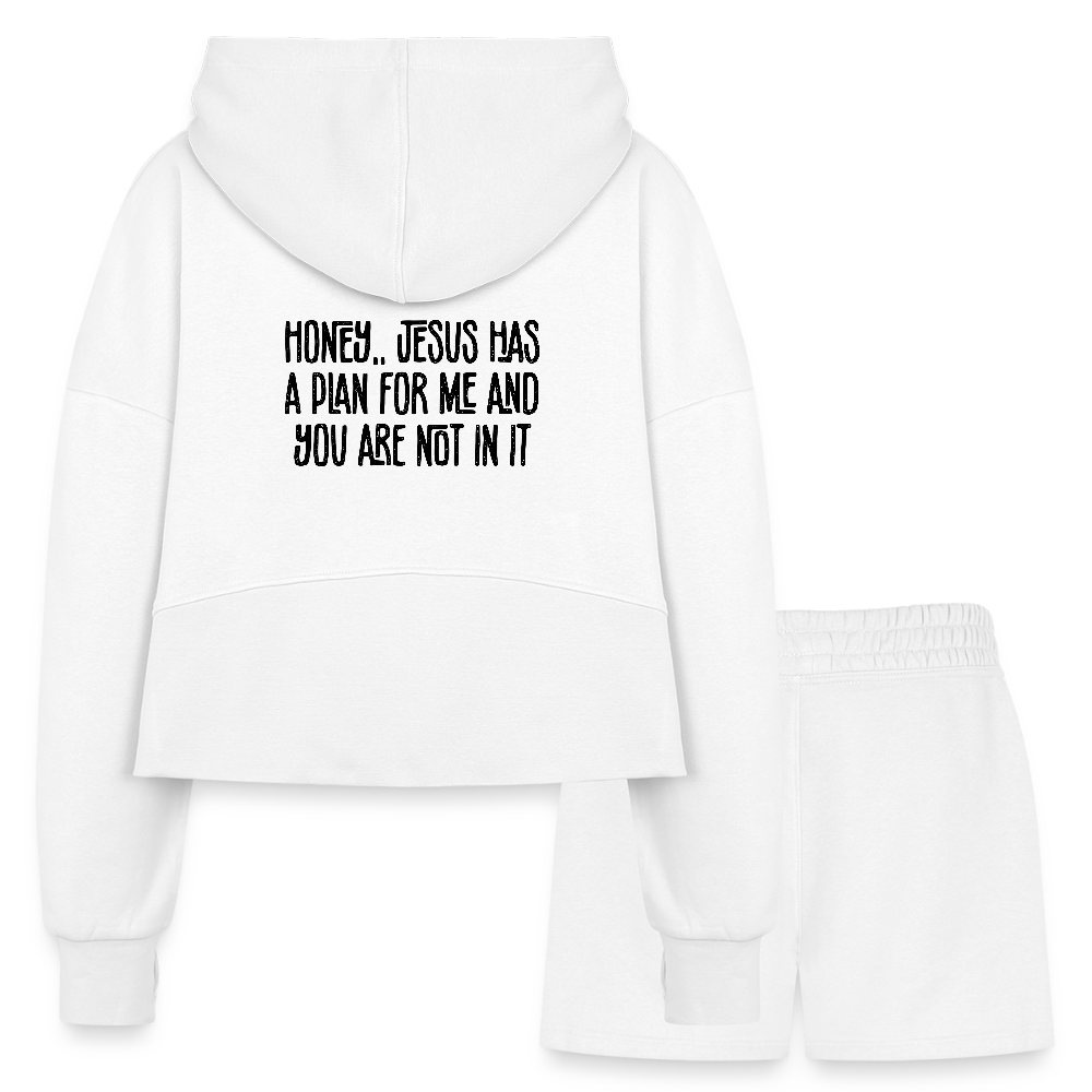 You Are Not In It Funny Christian Women’s Cropped Hoodie & Jogger Short Set Outfit - white