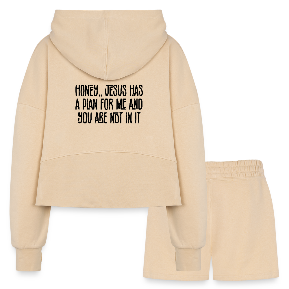 You Are Not In It Funny Christian Women’s Cropped Hoodie & Jogger Short Set Outfit - nude