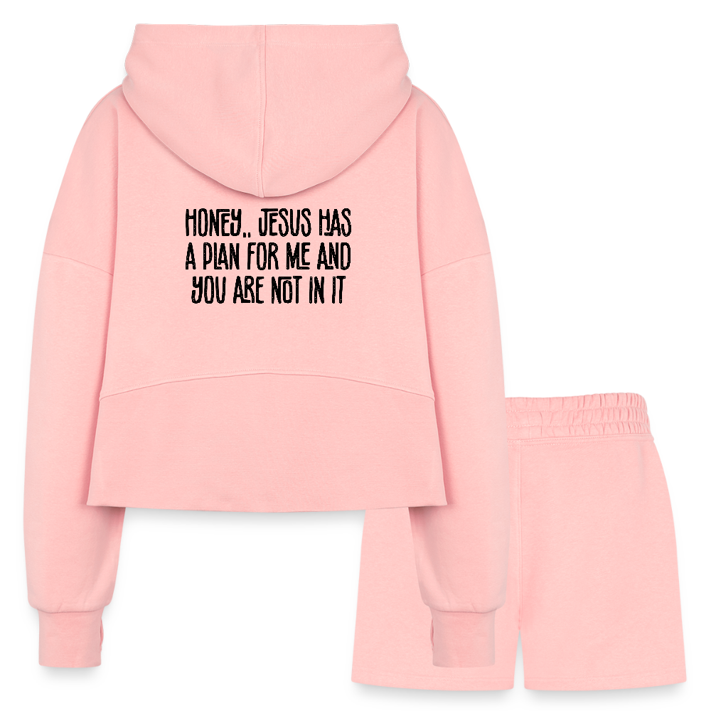 You Are Not In It Funny Christian Women’s Cropped Hoodie & Jogger Short Set Outfit - light pink